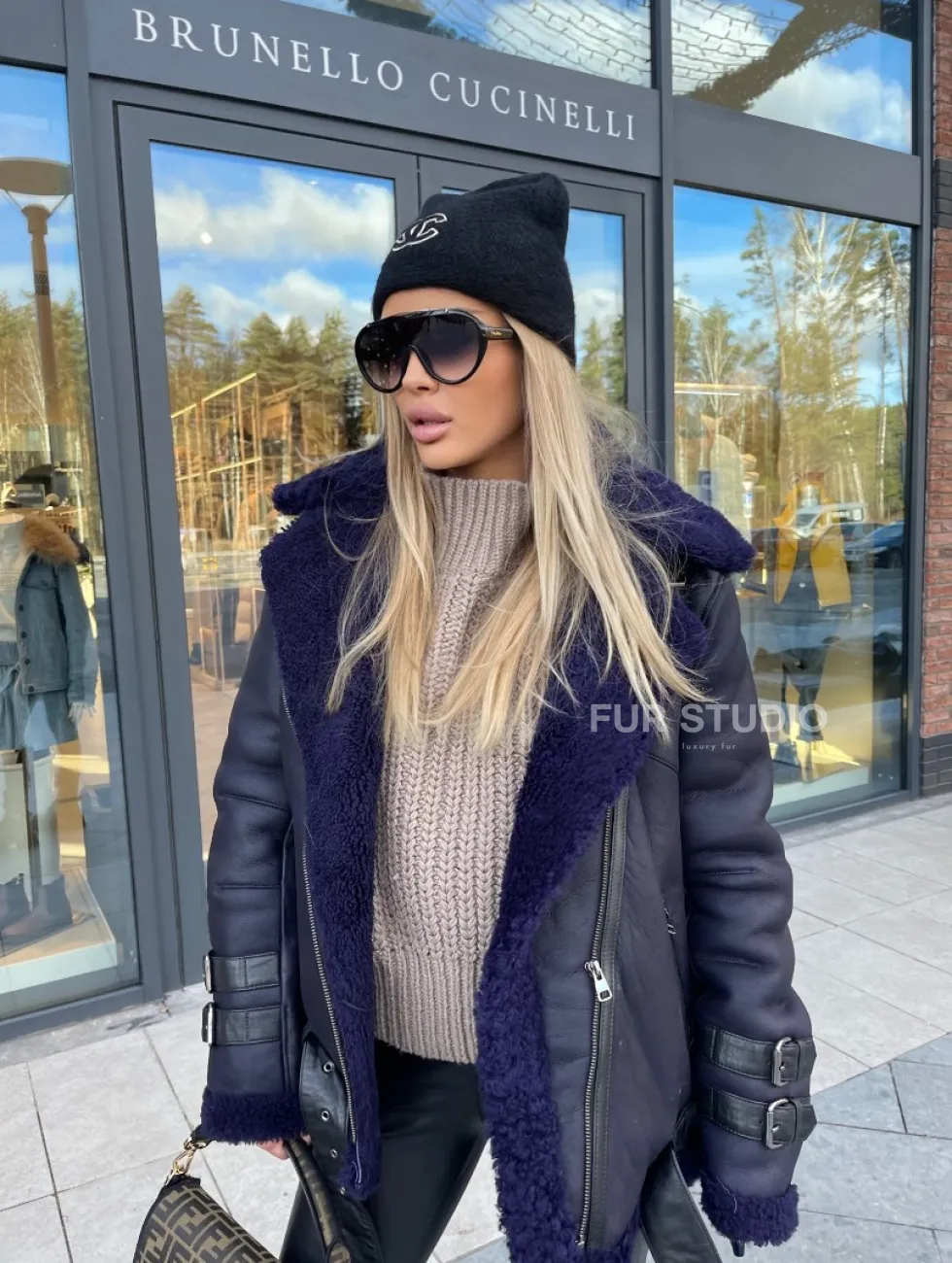 Натуральная овчина позаботится о комфортной температуре тела в любую непогоду и холода. Широкие рукава не сковывают движения, что очень удобно для тех, кто водит машину. Добавьте в образ стильный рюкзак и грубые ботинки - будете выглядеть дерзко, но очень женственно. Купить авиатор из натуральной овчины в синем цвете могут девушки, которые следят за модой и не боятся экспериментировать.