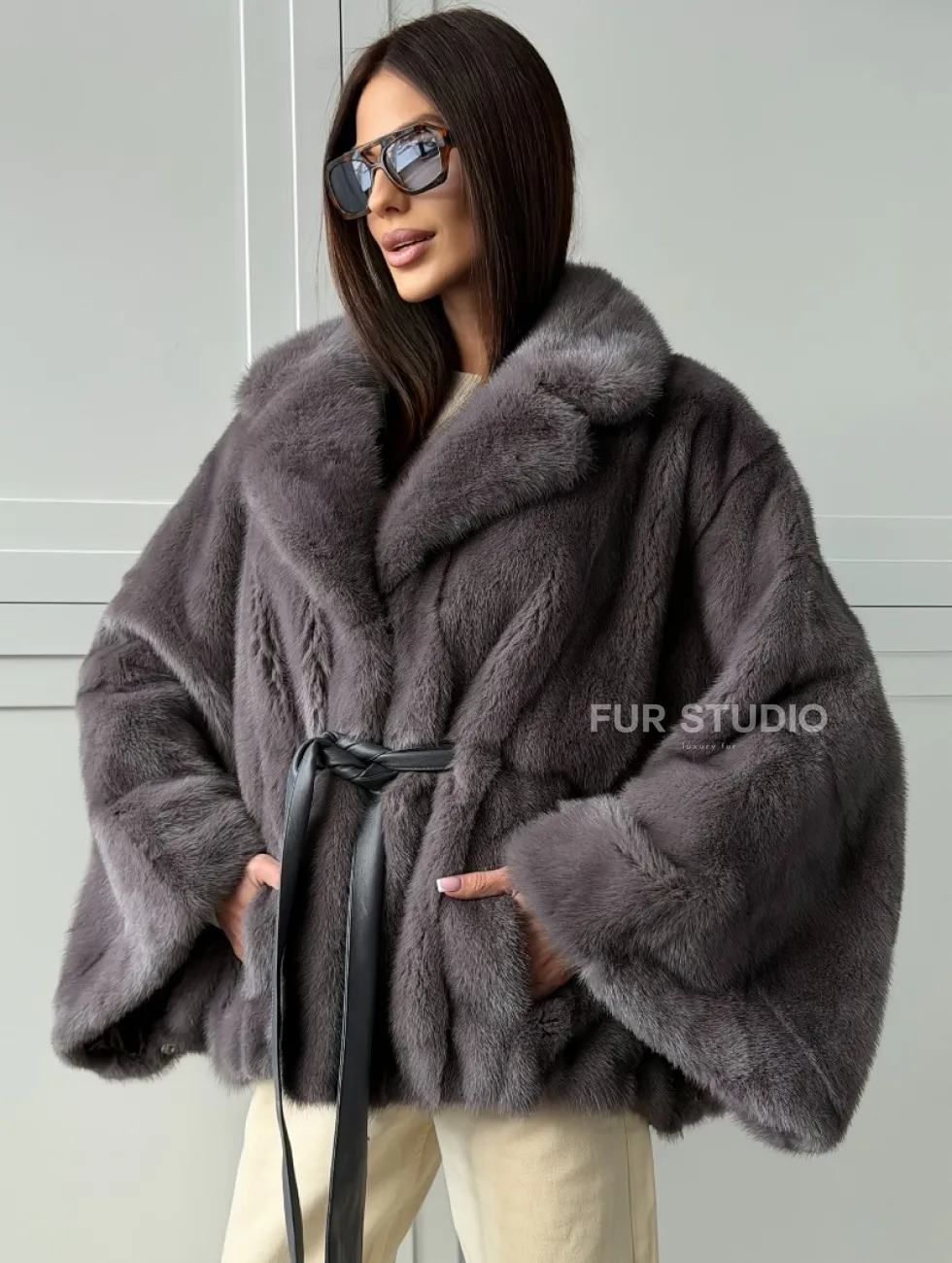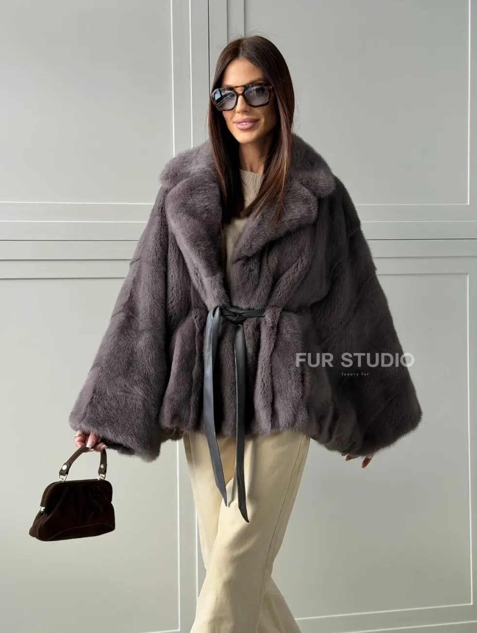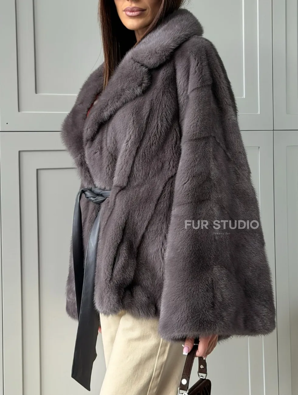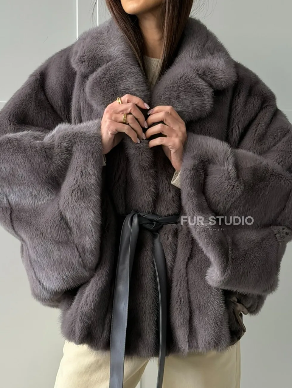 Мех данной шубы аукционная норка, цвет серый. Предлагается в размерах от 40 до 62 (oversize). Длина модели 60-65 см, что выгодно подчеркивает фигуру девушек. Эта модель идеально подойдет для девушек и женщин, предпочитающих роскошные натуральные меха.