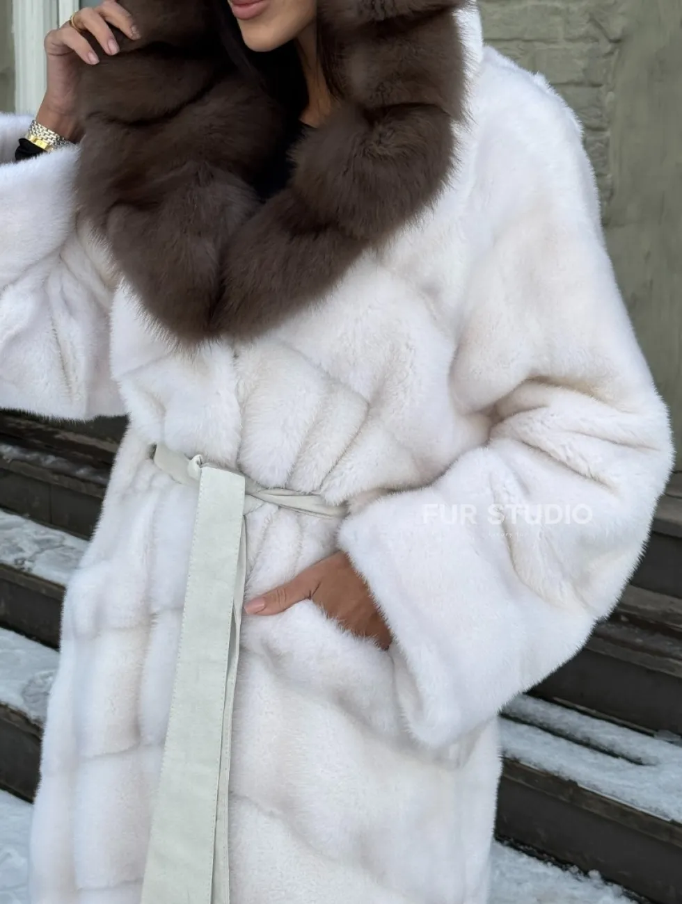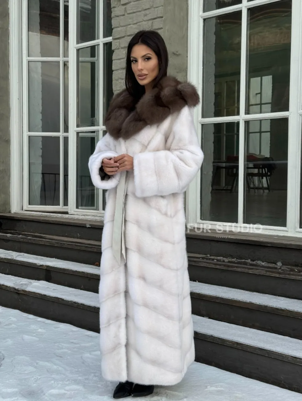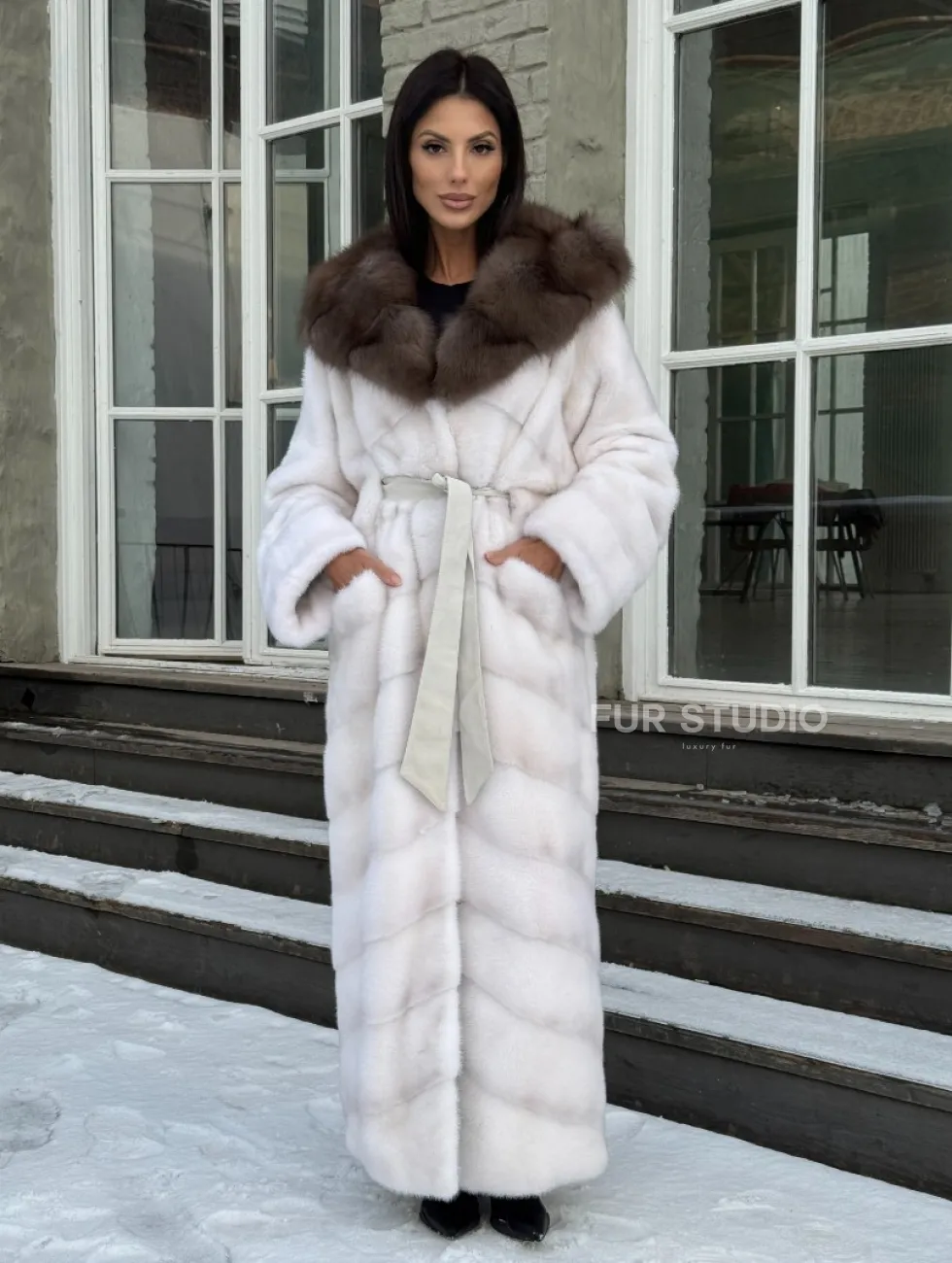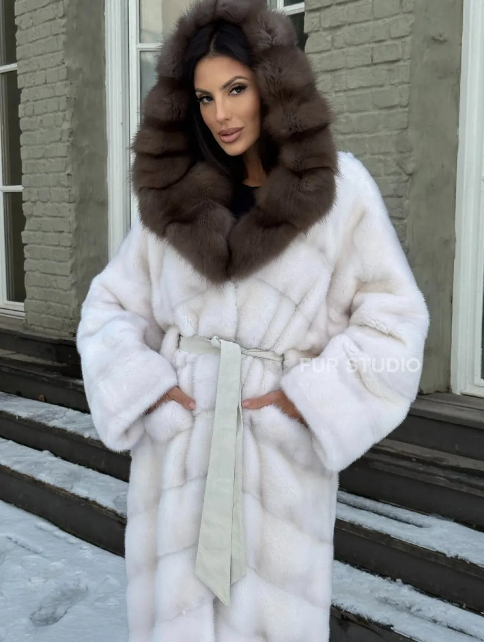 Белая длинная норковая шуба с капюшоном из натуральной куницы доступна для покупки в нашем шоуруме Furs Studio в Чите. У нас так же есть доставка во все города России. Добавьте немного роскоши в свой гардероб с этой шубой, которая будет служить вам многие годы.