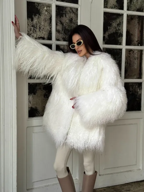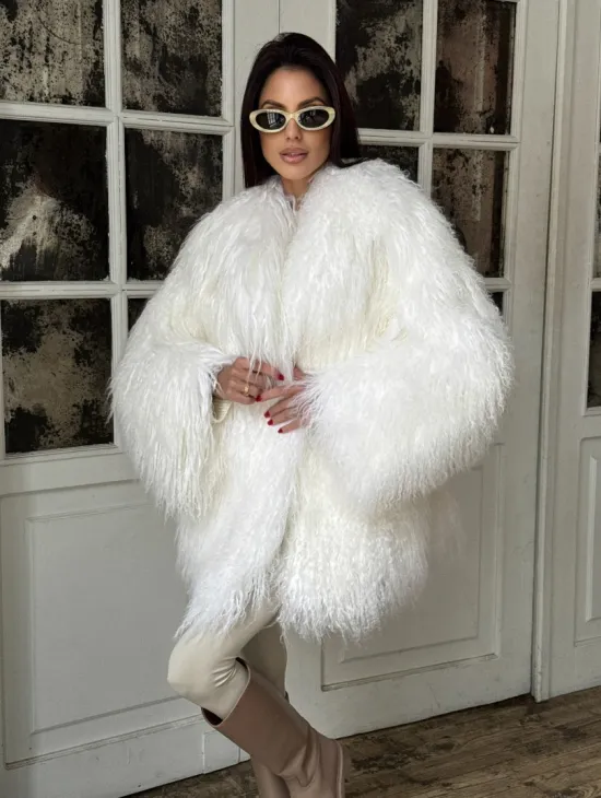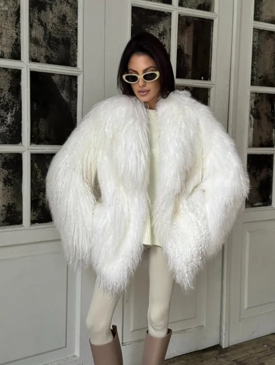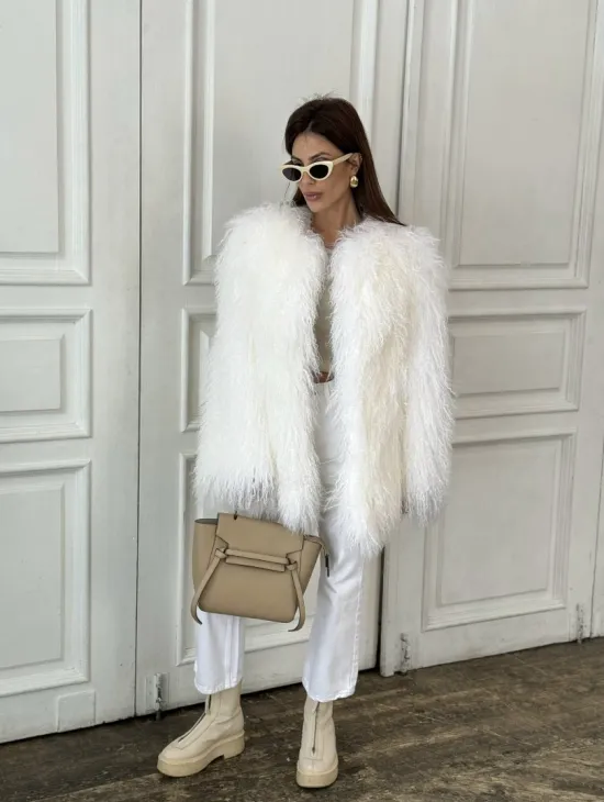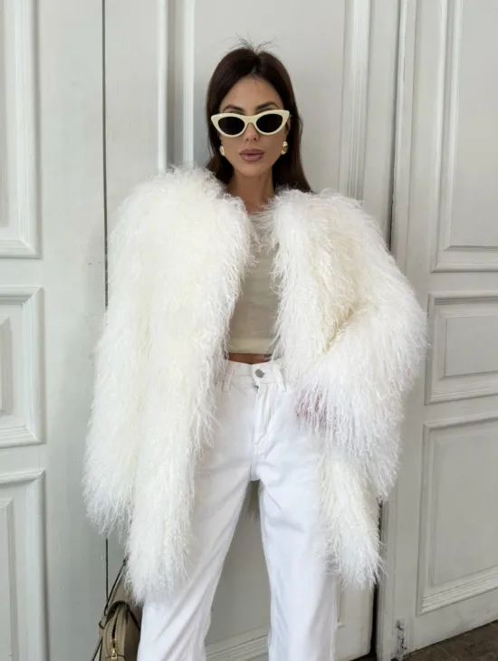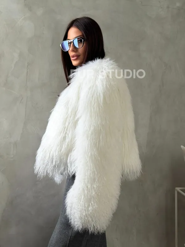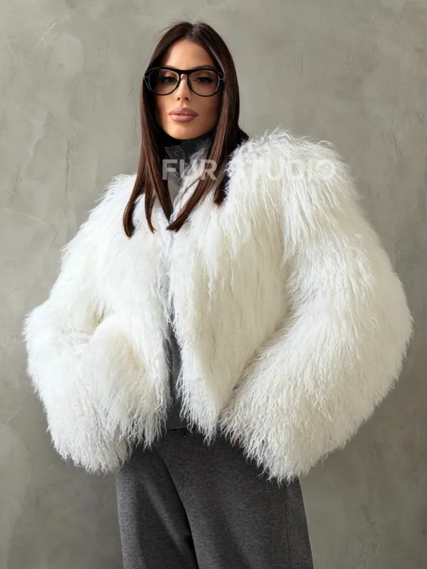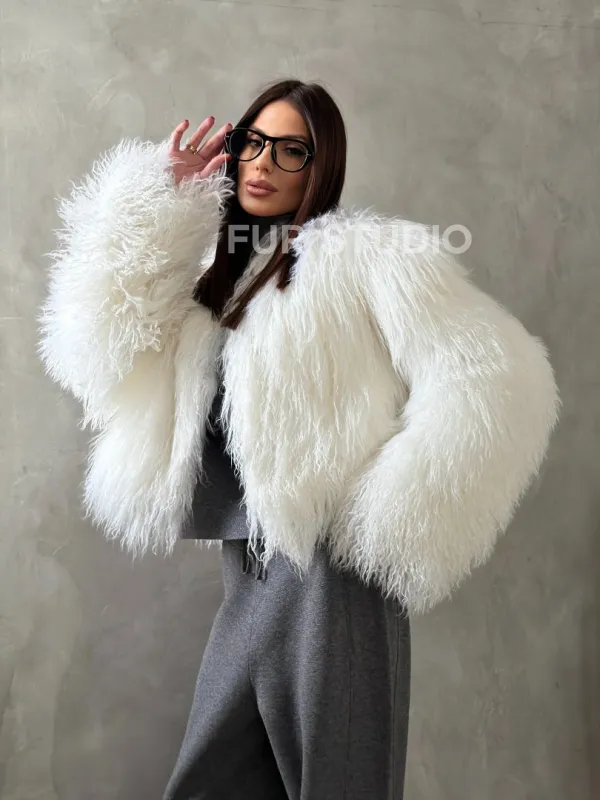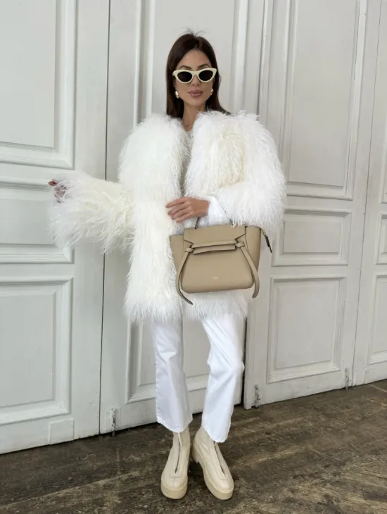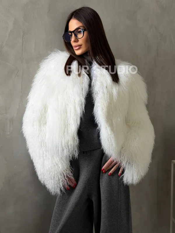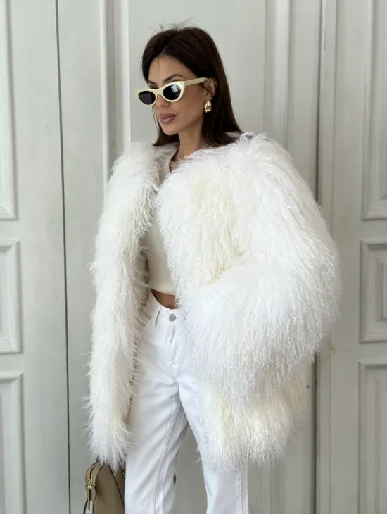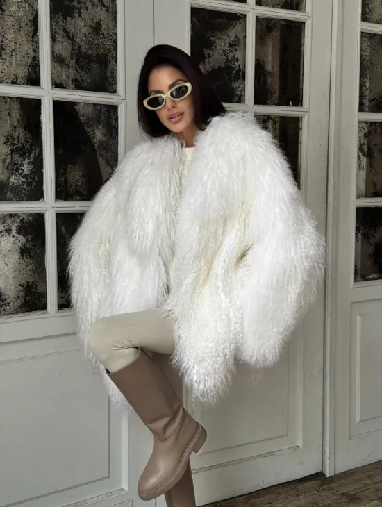 Белая кроп-шуба из меха ламы доступна для покупки в нашем шоуруме Furs Studio в Чите. У нас так же есть доставка во все города России. Добавьте немного роскоши в свой гардероб с этой шубой, которая будет служить вам многие годы.