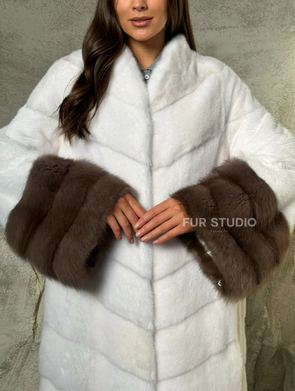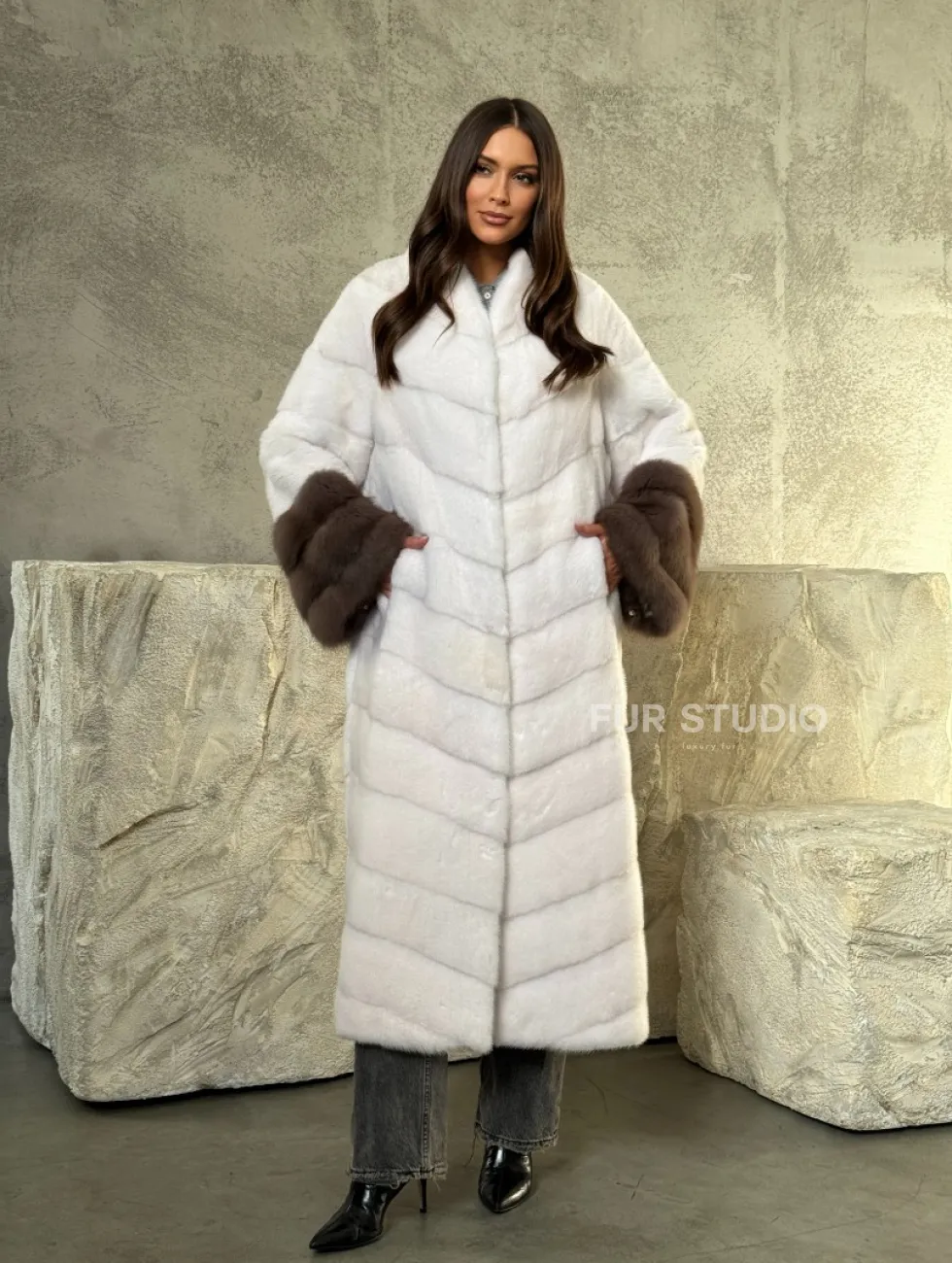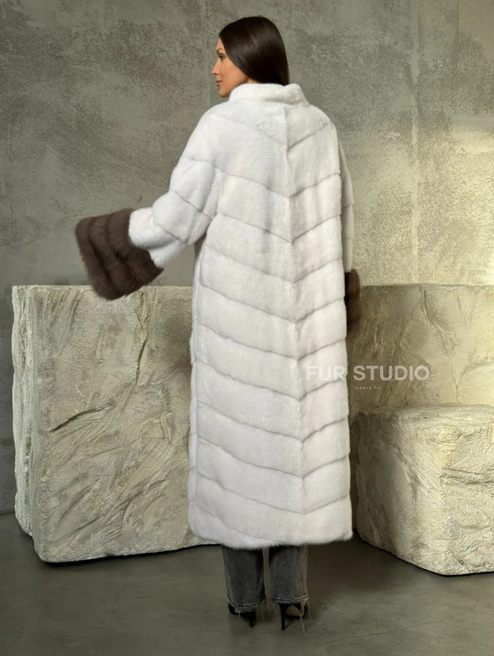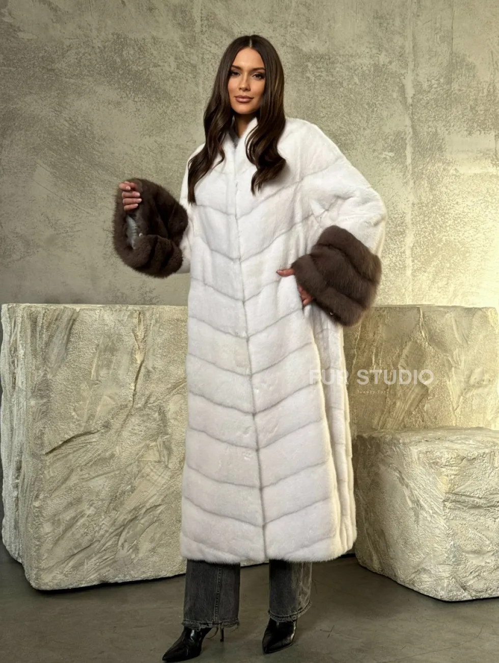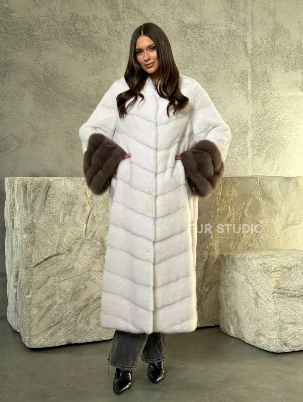 Белая норковая шуба с манжетами из меха куницы доступна для покупки в нашем шоуруме Furs Studio в Чите. У нас так же есть доставка во все города России. Добавьте немного роскоши в свой гардероб с этой шубой, которая будет служить вам многие годы.