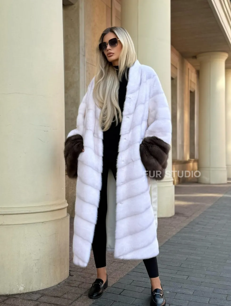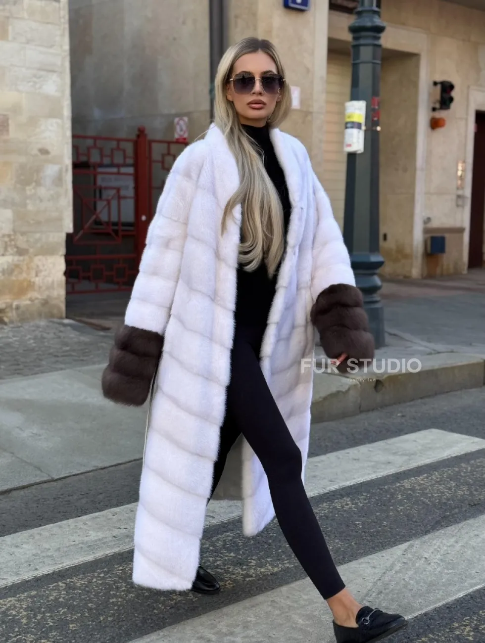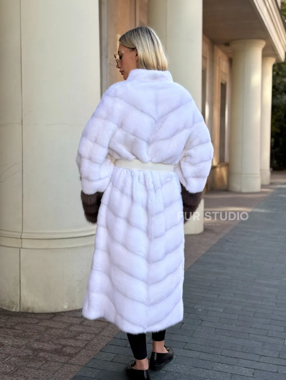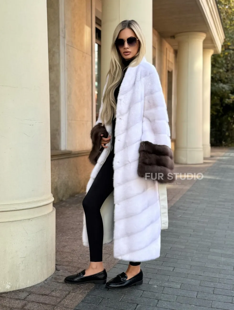 Белая норковая шуба с отделкой из куницы доступна для покупки в нашем шоуруме Furs Studio в Чите. У нас так же есть доставка во все города России. Добавьте немного роскоши в свой гардероб с этой шубой, которая будет служить вам многие годы.