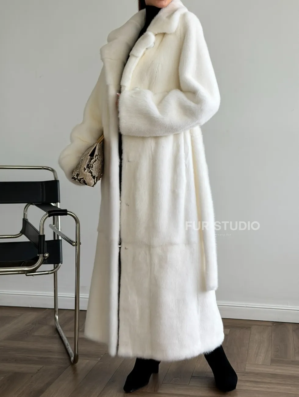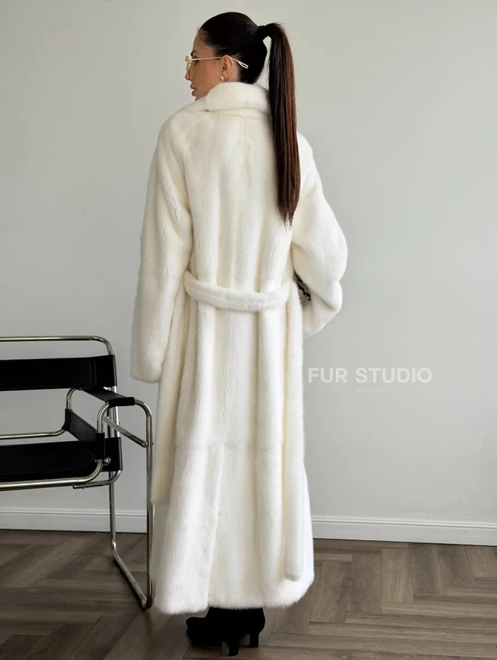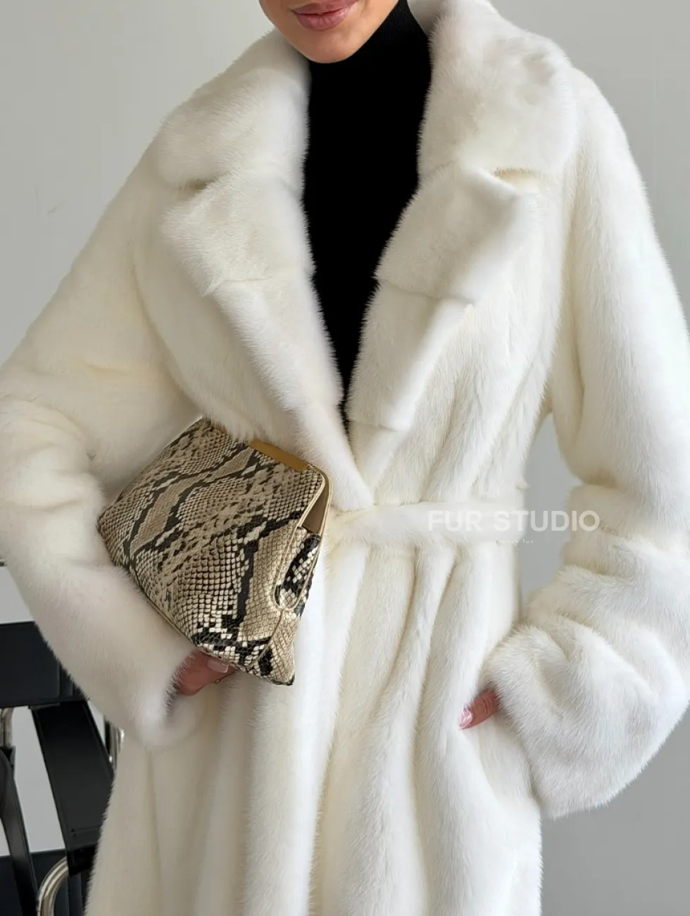 Мех данной шубы аукционная норка , цвет белый. Предлагается в размерах от 44 до 50. Длина модели 125-130 см, что выгодно подчеркивает фигуру девушек. Эта модель идеально подойдет для девушек и женщин, предпочитающих роскошные натуральные меха.