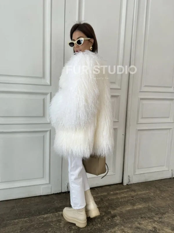 Белая шуба из меха ламы доступна для покупки в нашем шоуруме Furs Studio в Чите. У нас так же есть доставка во все города России. Добавьте немного роскоши в свой гардероб с этой шубой, которая будет служить вам многие годы.