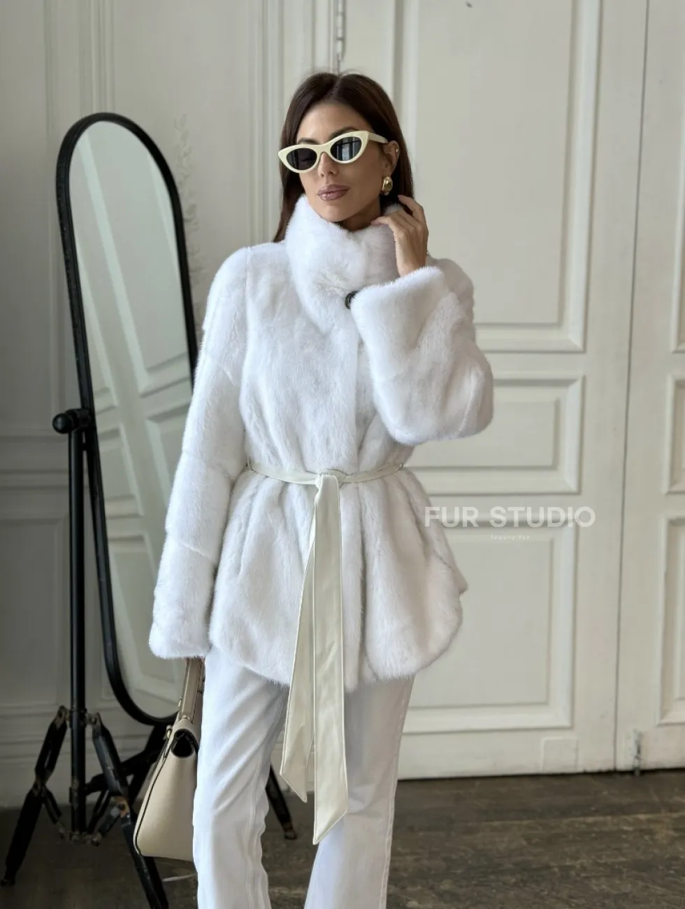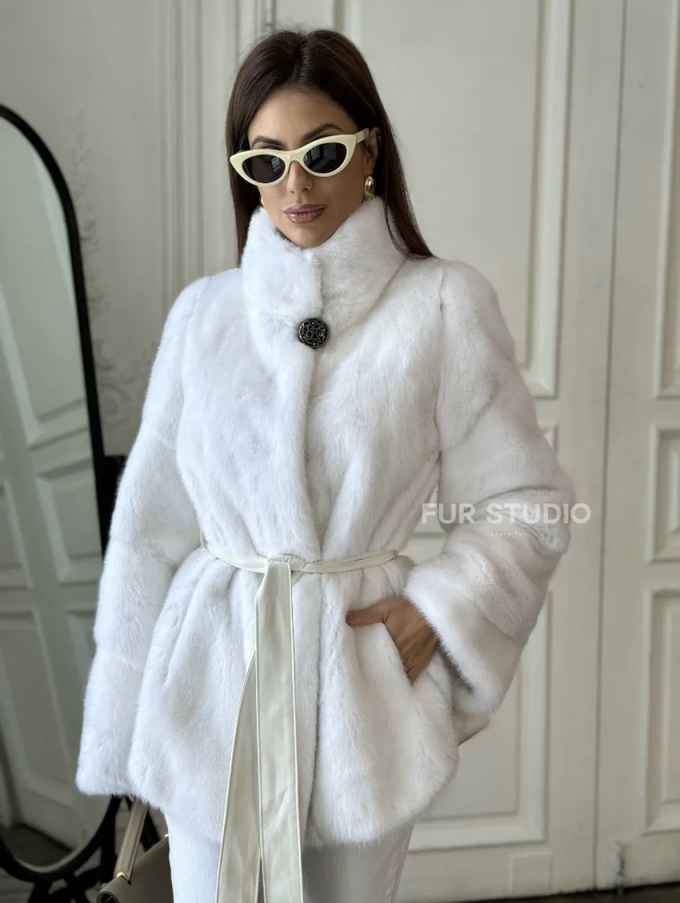 Белая шуба из меха норки (крестовка) стойка воротник доступна для покупки в нашем шоуруме Furs Studio в Чите. У нас так же есть доставка во все города России. Добавьте немного роскоши в свой гардероб с этой шубой, которая будет служить вам многие годы.