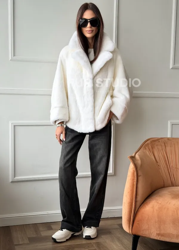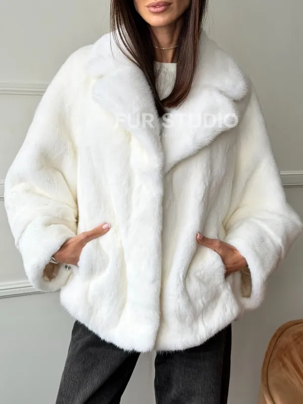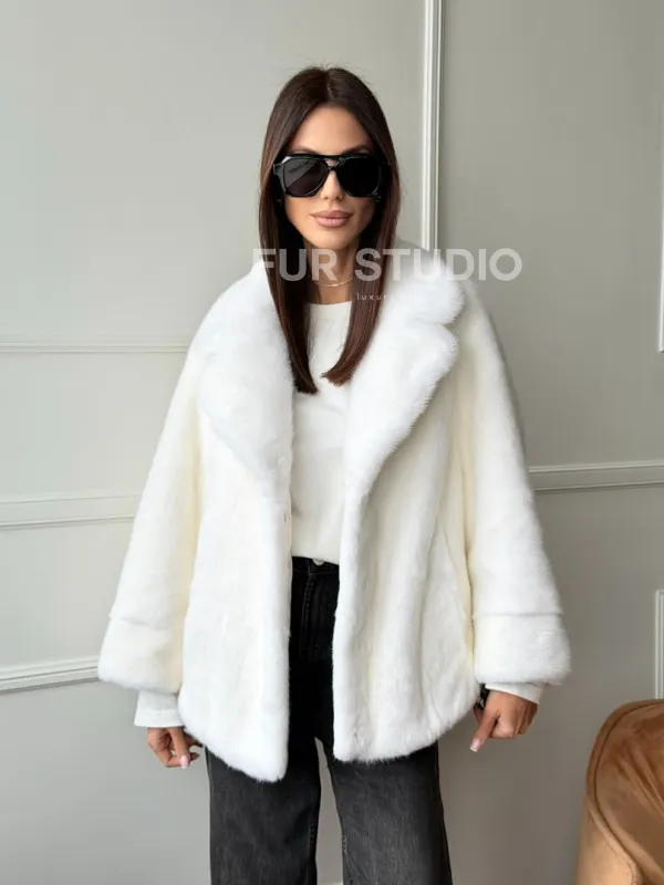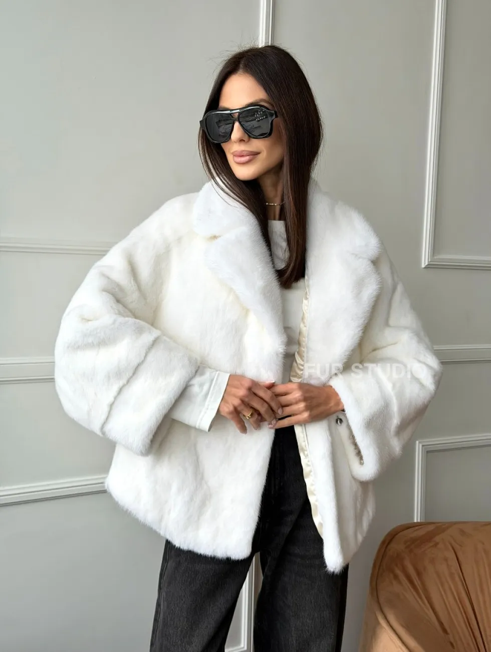 Мех данной шубы аукционная норка, цвет белый. Предлагается в размерах от 42 до 52. Длина модели 60-65 см, что выгодно подчеркивает фигуру девушек. Эта модель идеально подойдет для девушек и женщин, предпочитающих роскошные натуральные меха.