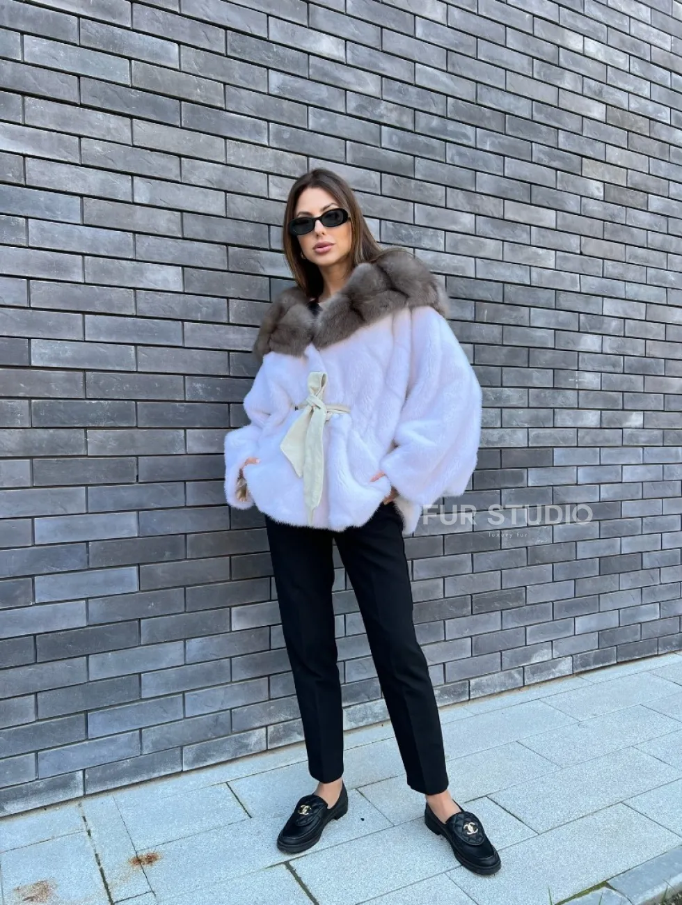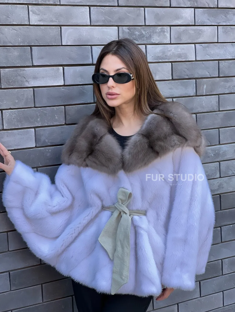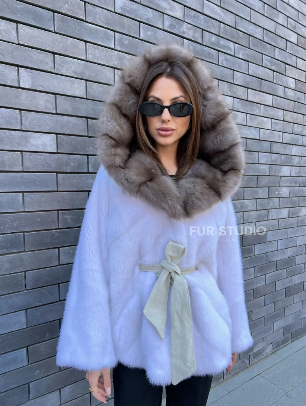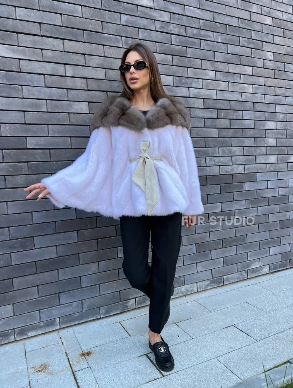 Модель отлично подойдет к базовому гардеробу, сочетается с вечерним туалетом. Статусная сумочка дополнит изысканный образ. Вы будете чувствовать себя королевой и приковывать взгляды. Пончо легкое и практически невесомое. Купить белое норковое пончо с воротником из куницы могут дамы, которые имеют безукоризненный вкус и любят выглядеть шикарно, роскошно.
