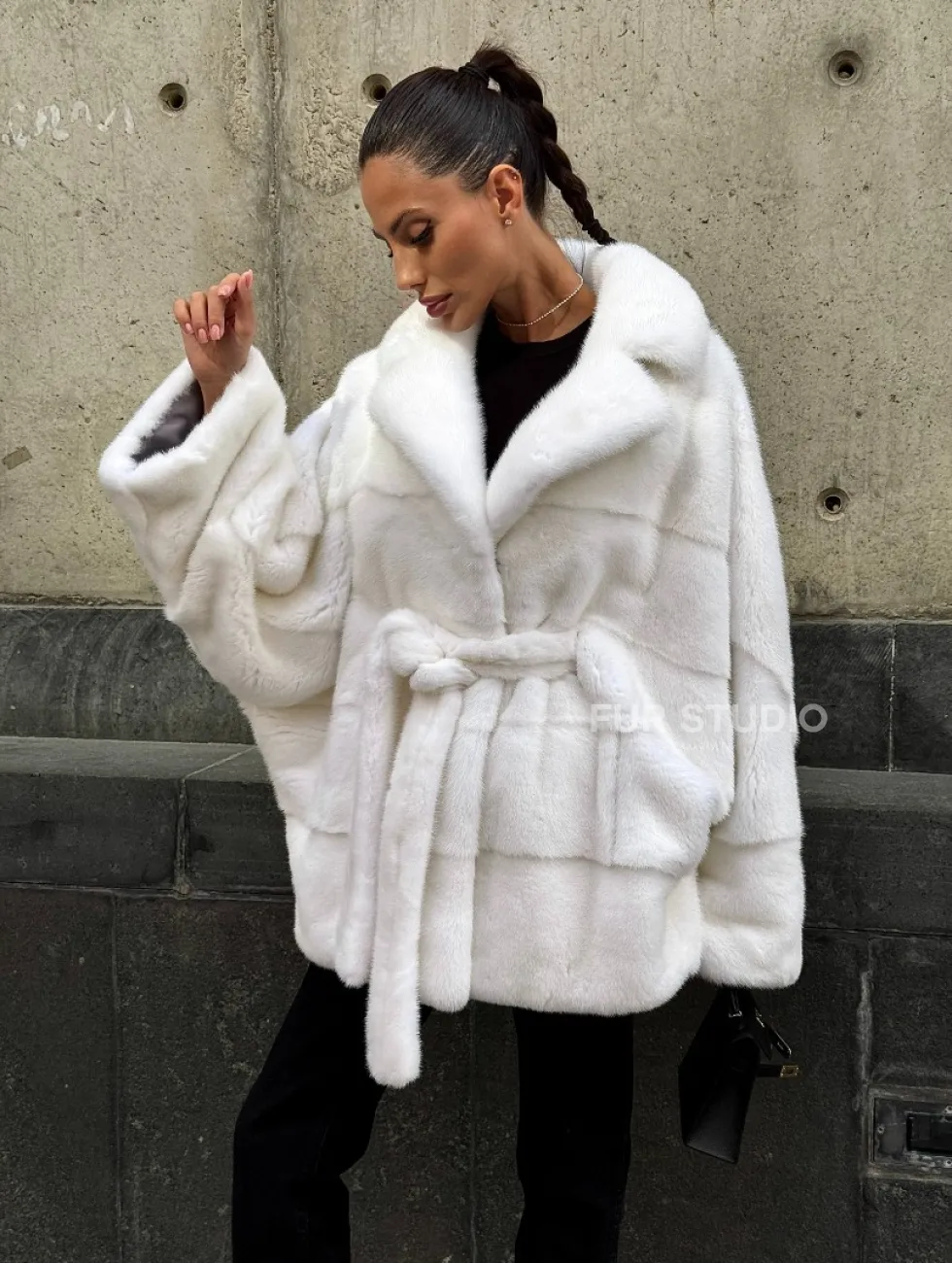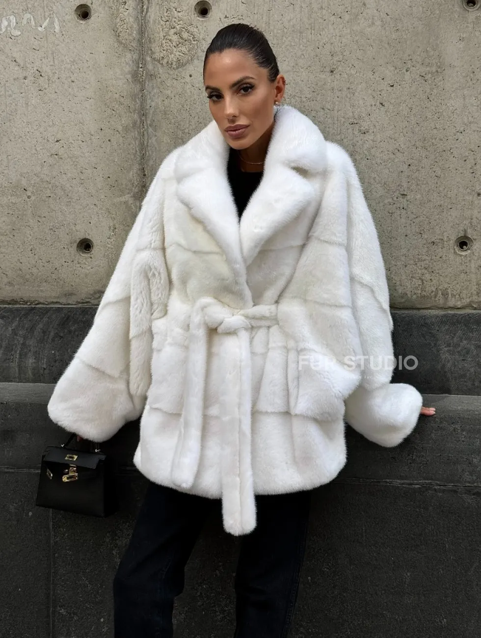 Белоснежная норковая шуба фасон "Летучая мышь", классический английский воротник доступна для покупки в нашем шоуруме Furs Studio в Чите. У нас так же есть доставка во все города России. Добавьте немного роскоши в свой гардероб с этой шубой, которая будет служить вам многие годы.