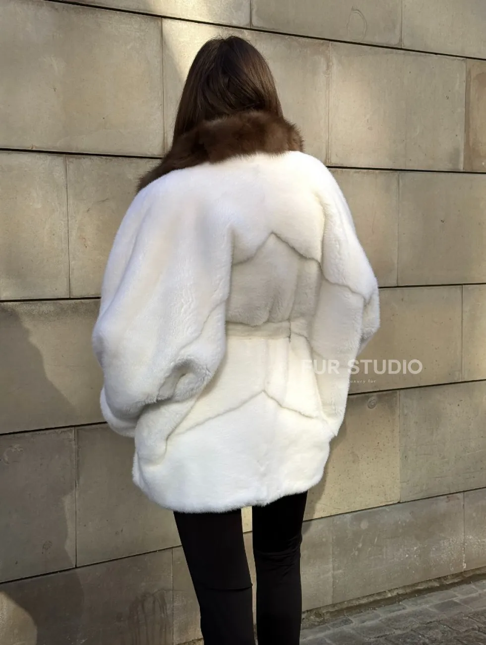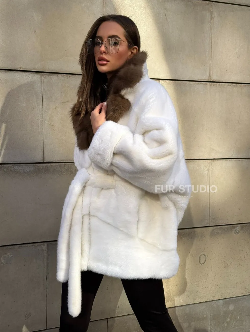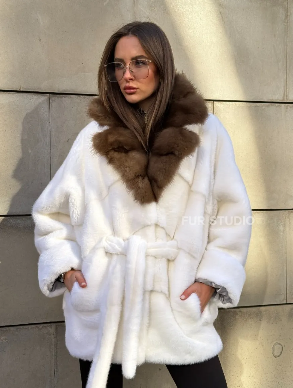 Белоснежная норковая шуба в стиле оверсайз с воротником из меха куницы доступна для покупки в нашем шоуруме Furs Studio в Чите. У нас так же есть доставка во все города России. Добавьте немного роскоши в свой гардероб с этой шубой, которая будет служить вам многие годы.