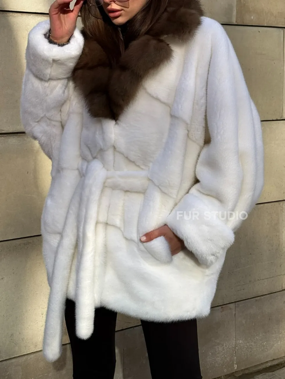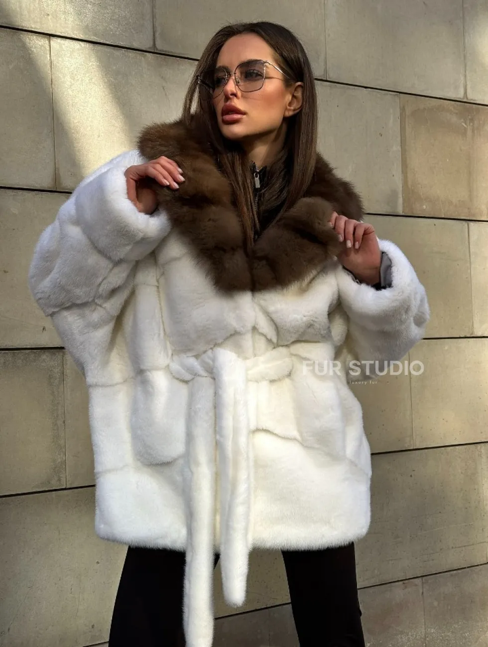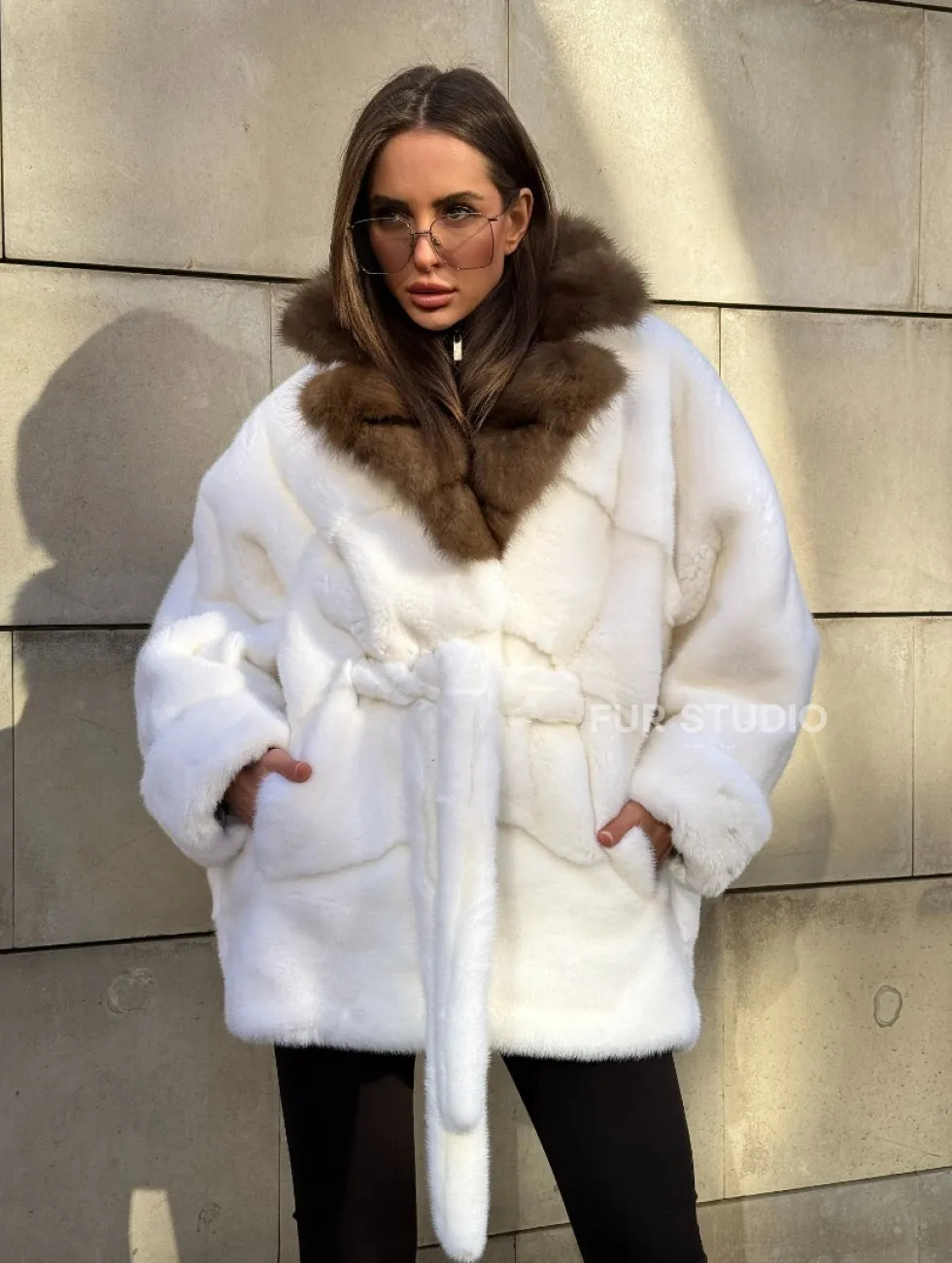 Белоснежная норковая шуба в стиле оверсайз с воротником из меха куницы доступна для покупки в нашем шоуруме Furs Studio в Чите. У нас так же есть доставка во все города России. Добавьте немного роскоши в свой гардероб с этой шубой, которая будет служить вам многие годы.
