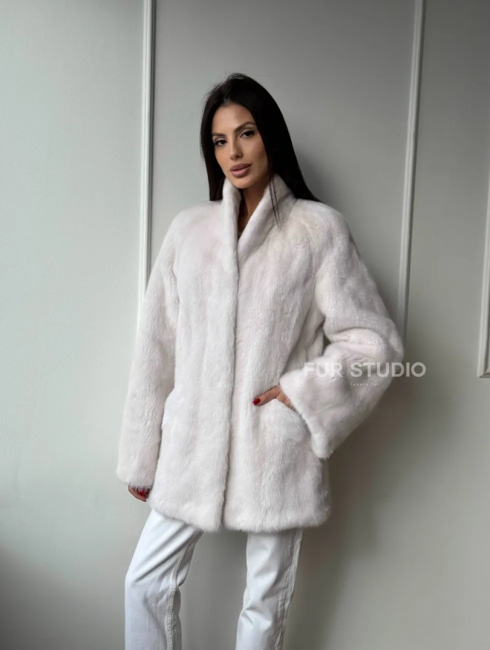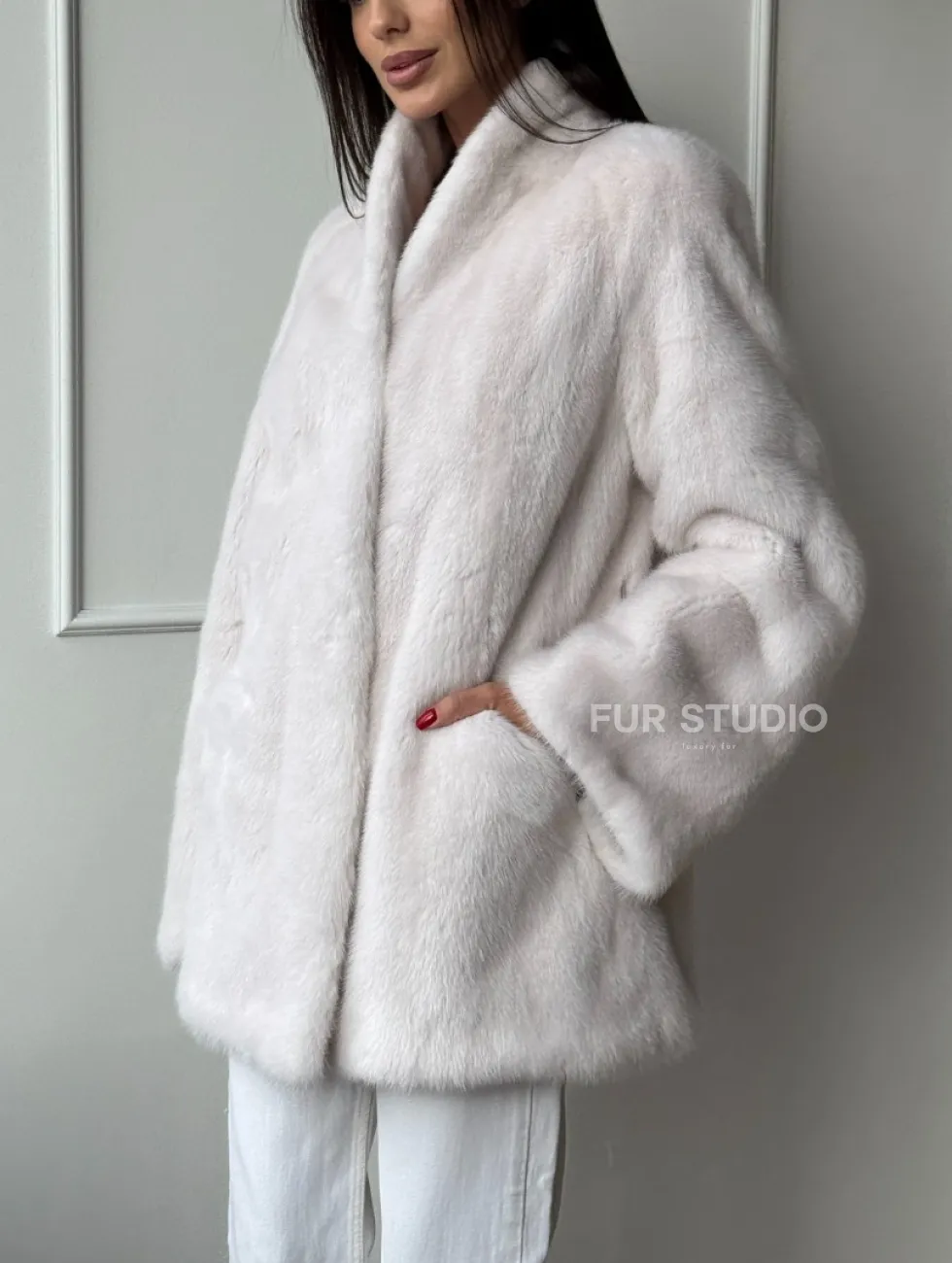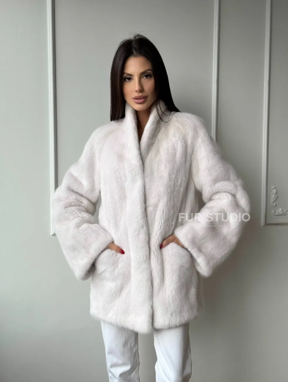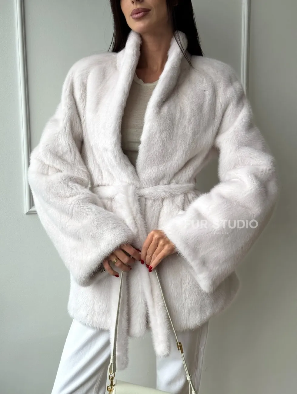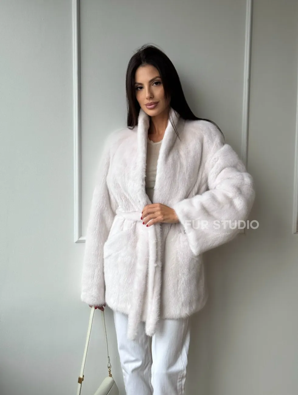 Белый меховой жакет из норки с V-образным воротником и поясом доступна для покупки в нашем шоуруме Furs Studio в Чите. У нас так же есть доставка во все города России. Добавьте немного роскоши в свой гардероб с этой шубой, которая будет служить вам многие годы.