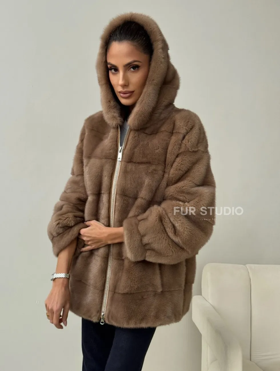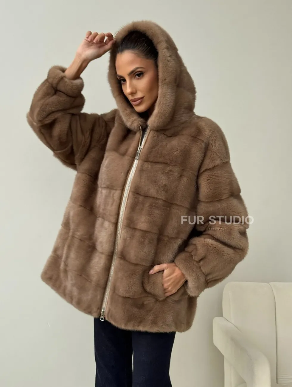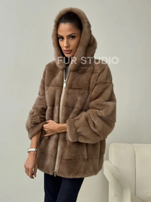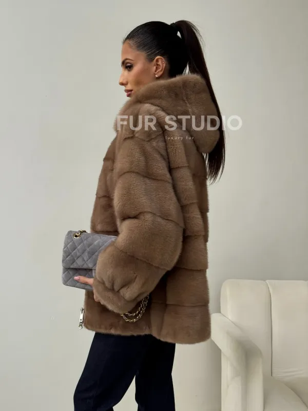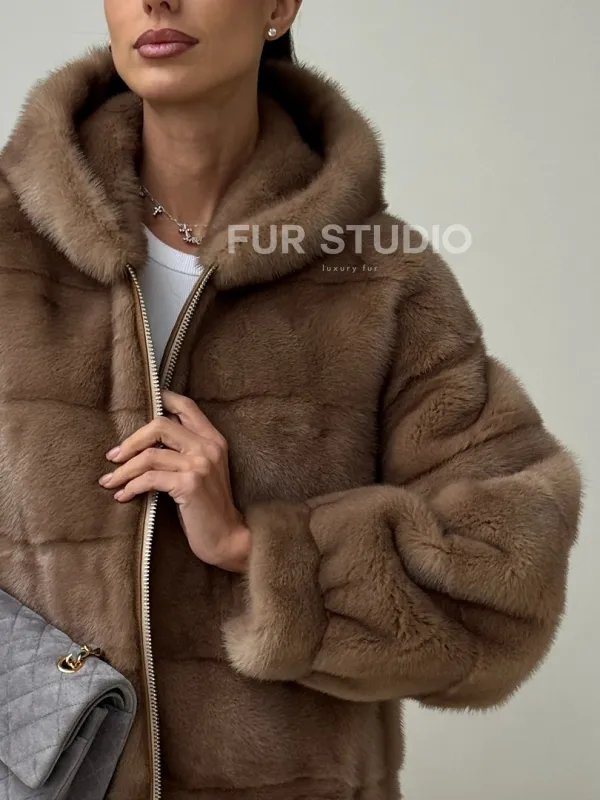 Бежевая норковая куртка с капюшоном доступна для покупки в нашем магазине Furs Studio в Чите, с возможностью доставки в любой город России. Добавьте немного стиля и элегантности в свой гардероб с этой курткой, которая будет вам служить многие годы, подчеркивая ваш неповторимый стиль.