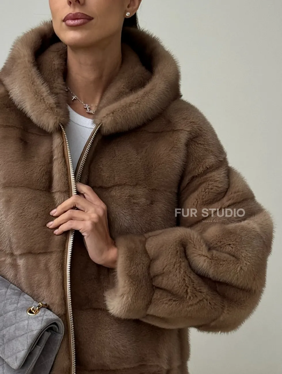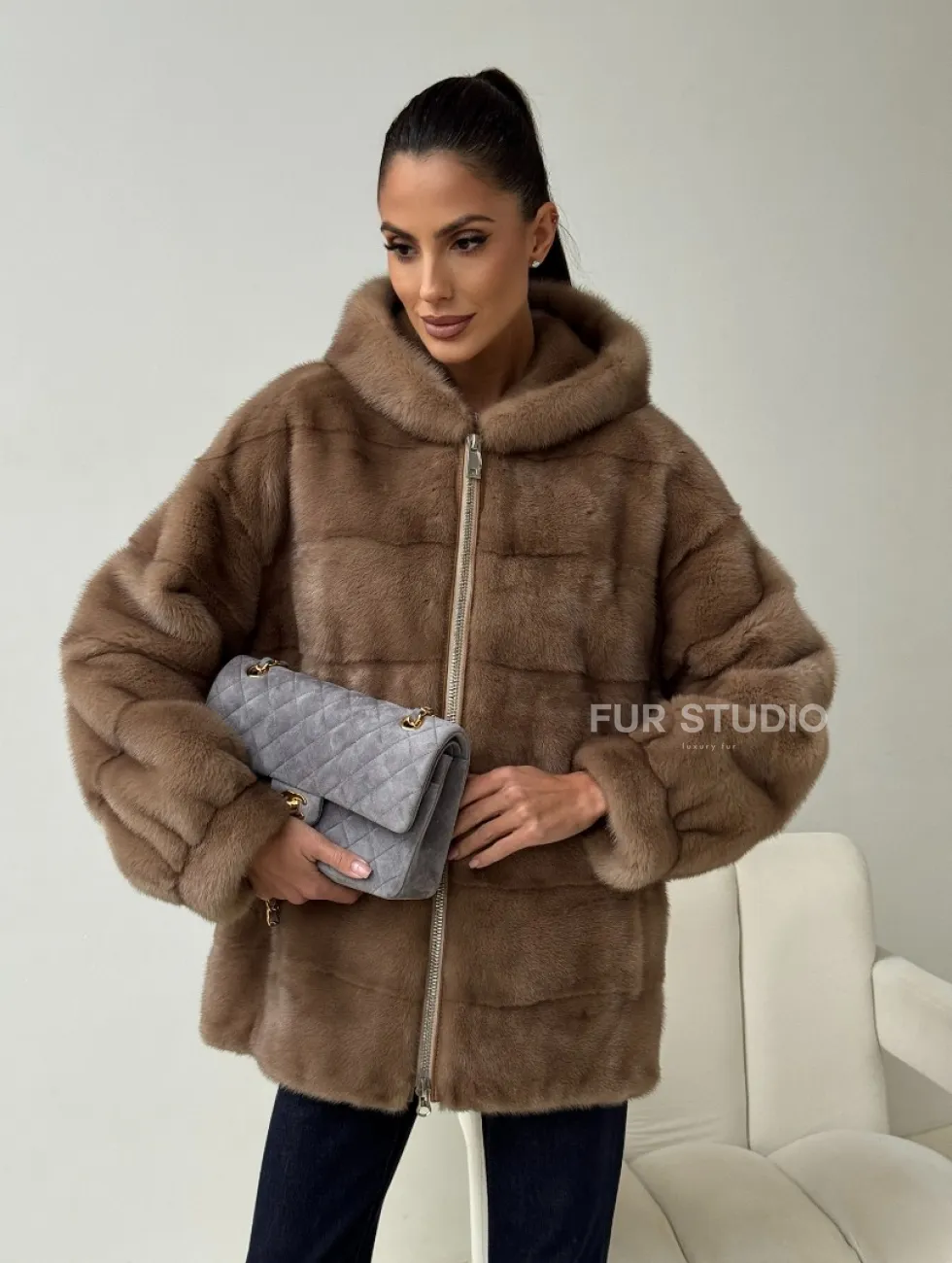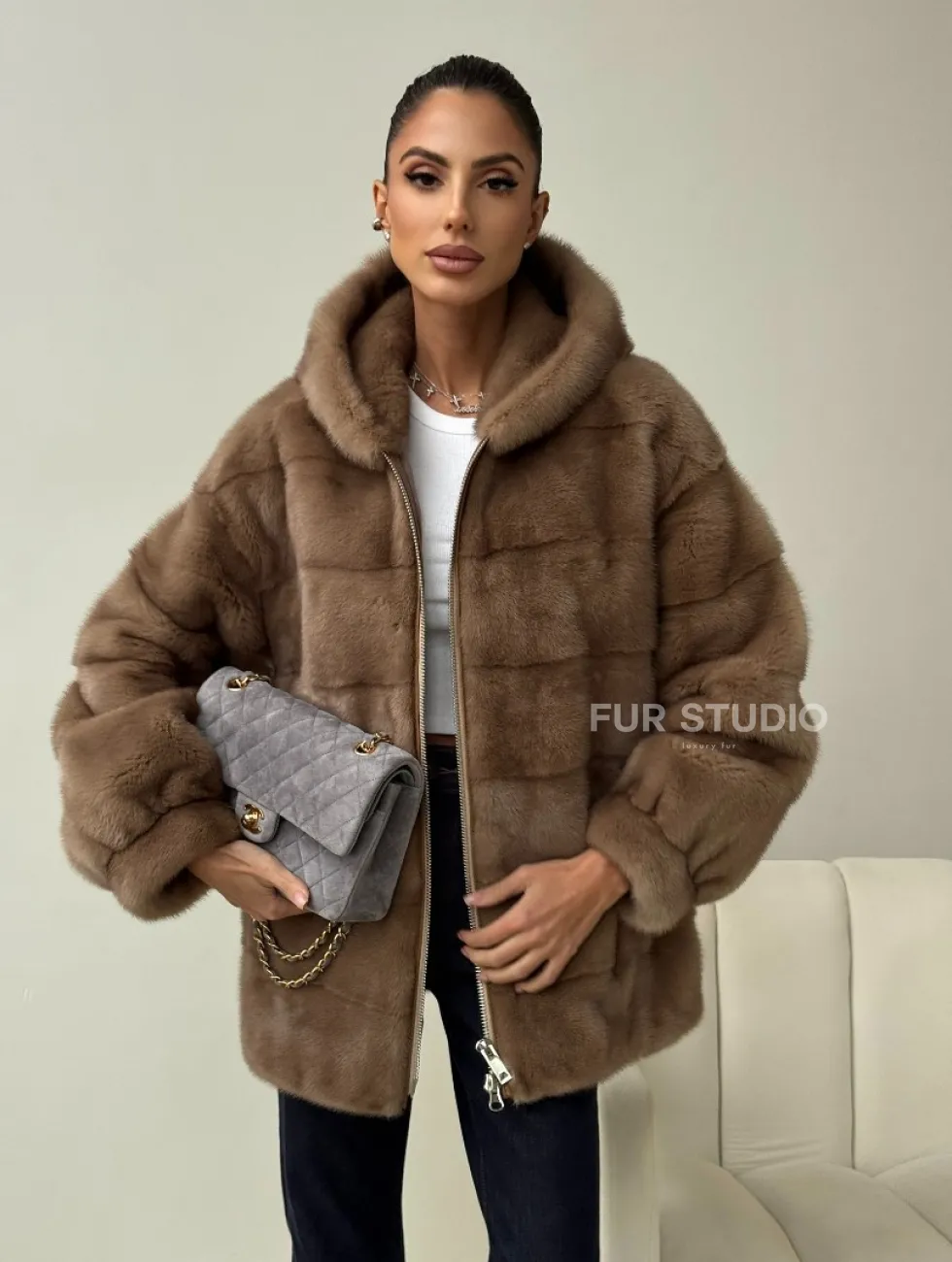 Бежевая норковая куртка с капюшоном доступна для покупки в нашем магазине Furs Studio в Чите, с возможностью доставки в любой город России. Добавьте немного стиля и элегантности в свой гардероб с этой курткой, которая будет вам служить многие годы, подчеркивая ваш неповторимый стиль.