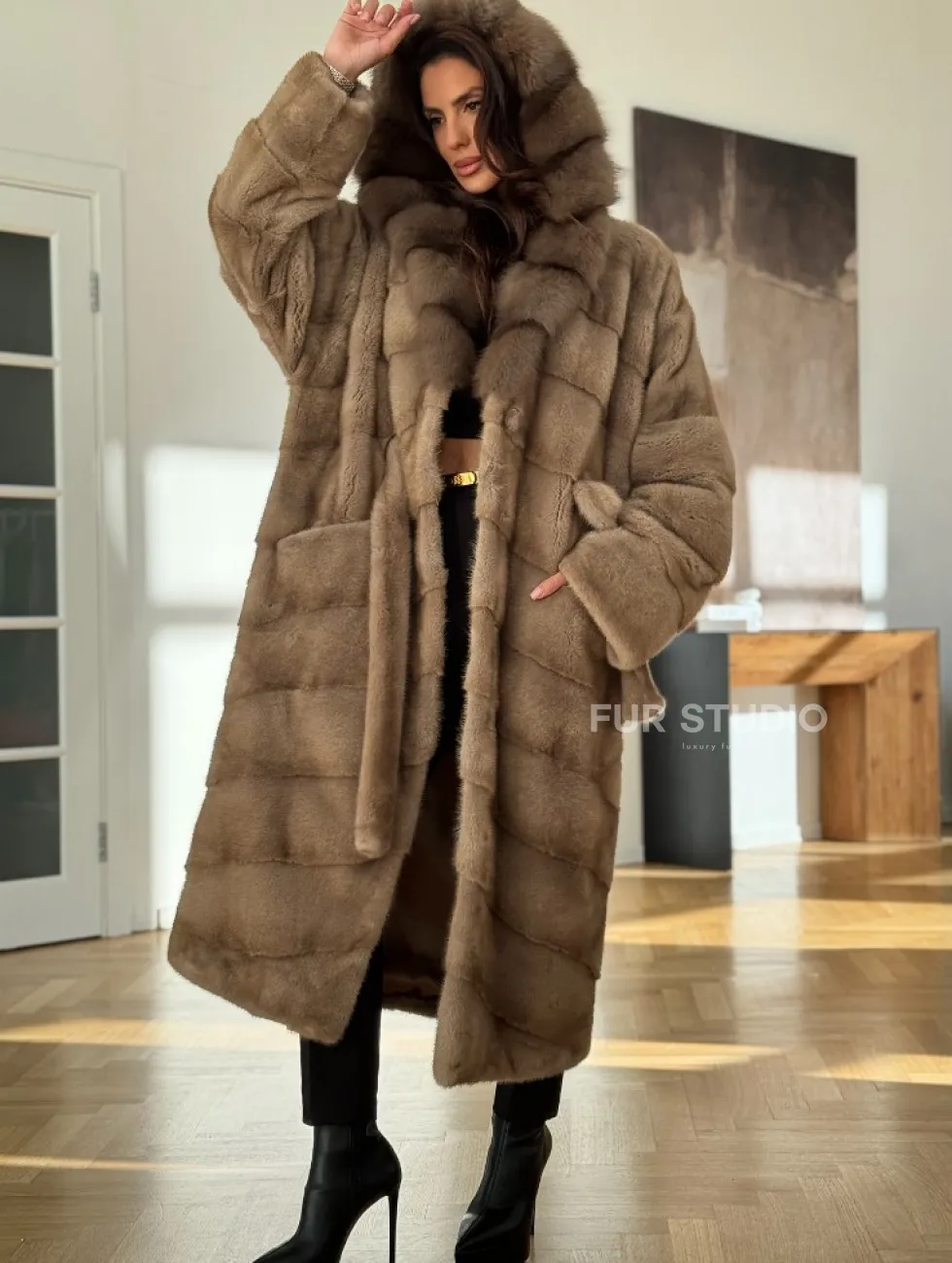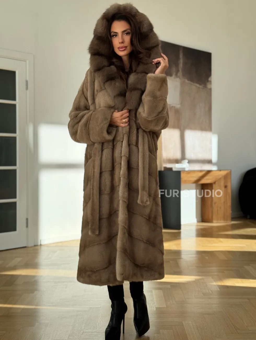 Бежевая норковая шуба с капюшоном куница доступна для покупки в нашем шоуруме Furs Studio в Чите. У нас так же есть доставка во все города России. Добавьте немного роскоши в свой гардероб с этой шубой, которая будет служить вам многие годы.