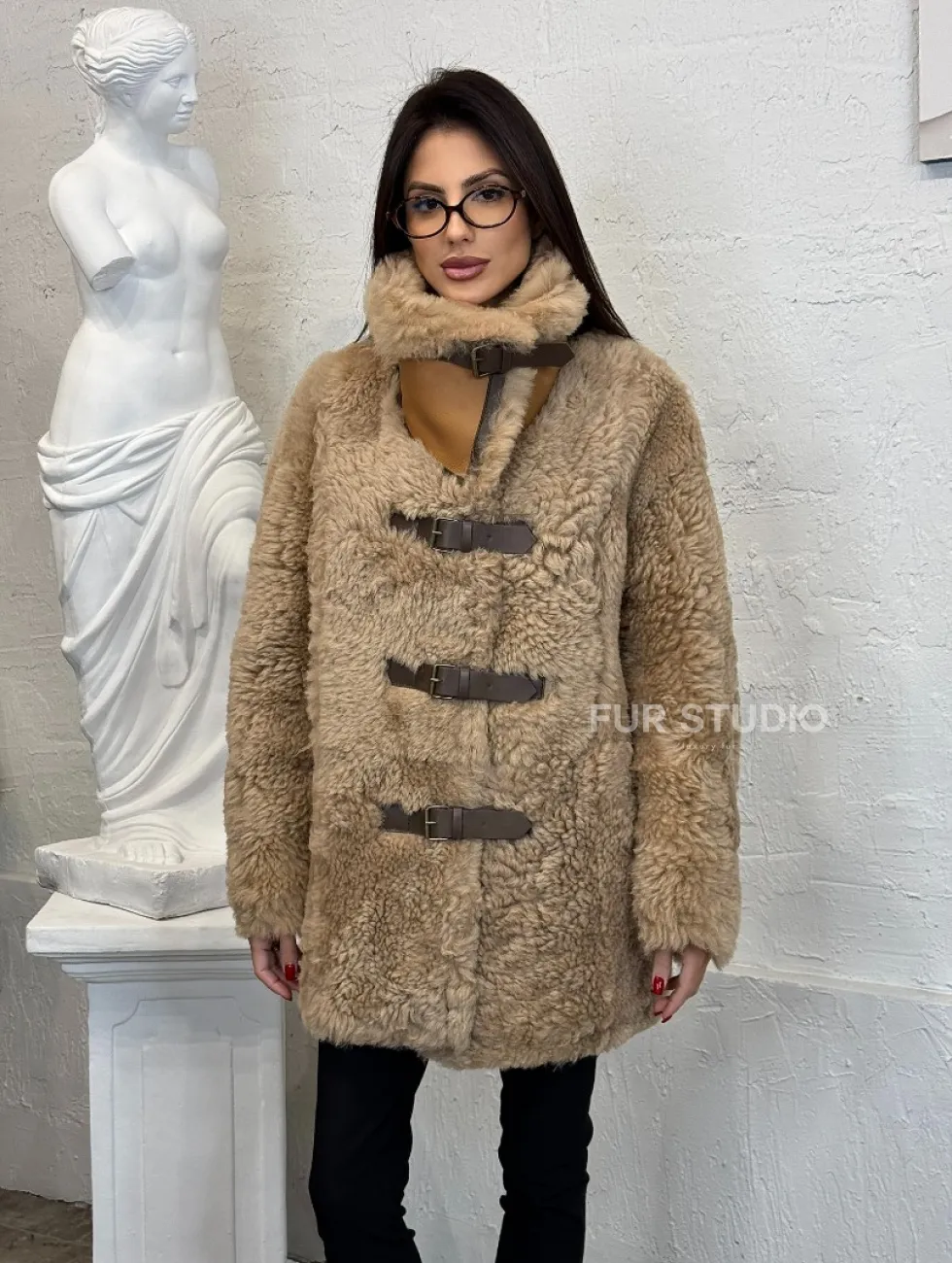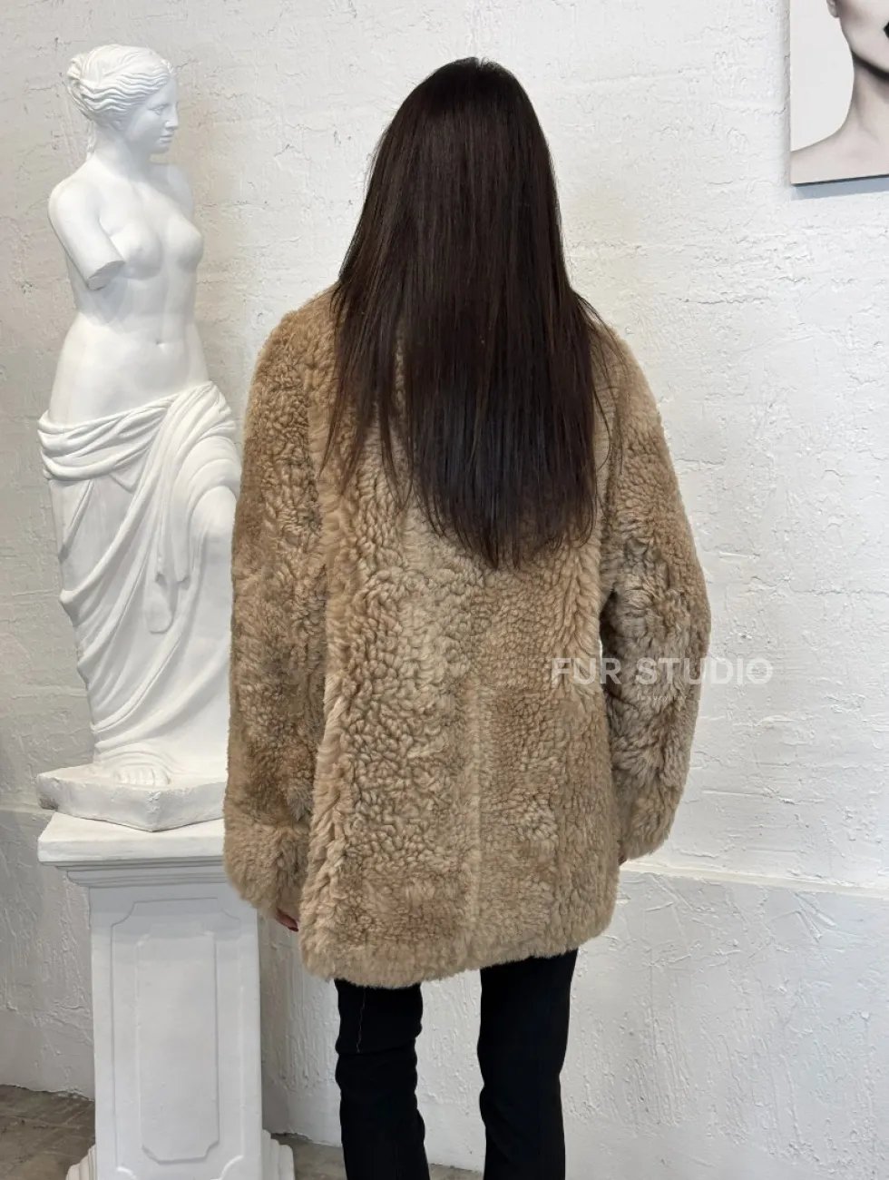 Бежевая женская дубленка из натуральной овчины Тиградо средней длины с отложным воротником доступна для покупки в нашем шоуруме Furs Studio в Чите, а также предлагается удобная доставка во все города России. Обогатите свой гардероб этой дубленкой, которая прослужит вам многие годы, добавив немного роскоши в ваш повседневный образ.