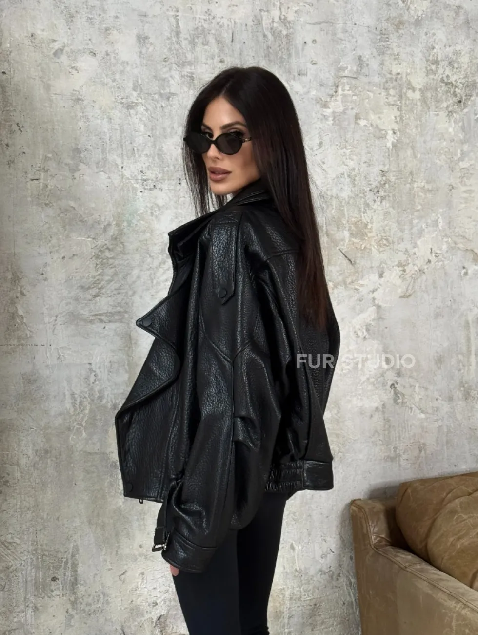 Восхититесь элегантностью и несравненным комфортом с нашей эксклюзивной коллекцией кожаных изделий. Изготовленная из первоклассной натуральной кожи, Черная бомбер-курточка «Оверсайз» из кожи Джумбо с двойным воротником и карманами не только согреет вас в прохладные дни, но и подчеркнет ваш изысканный вкус. Уникальный дизайн и высокое качество делают наши представленные образцы идеальным выбором для утончённых образов.
