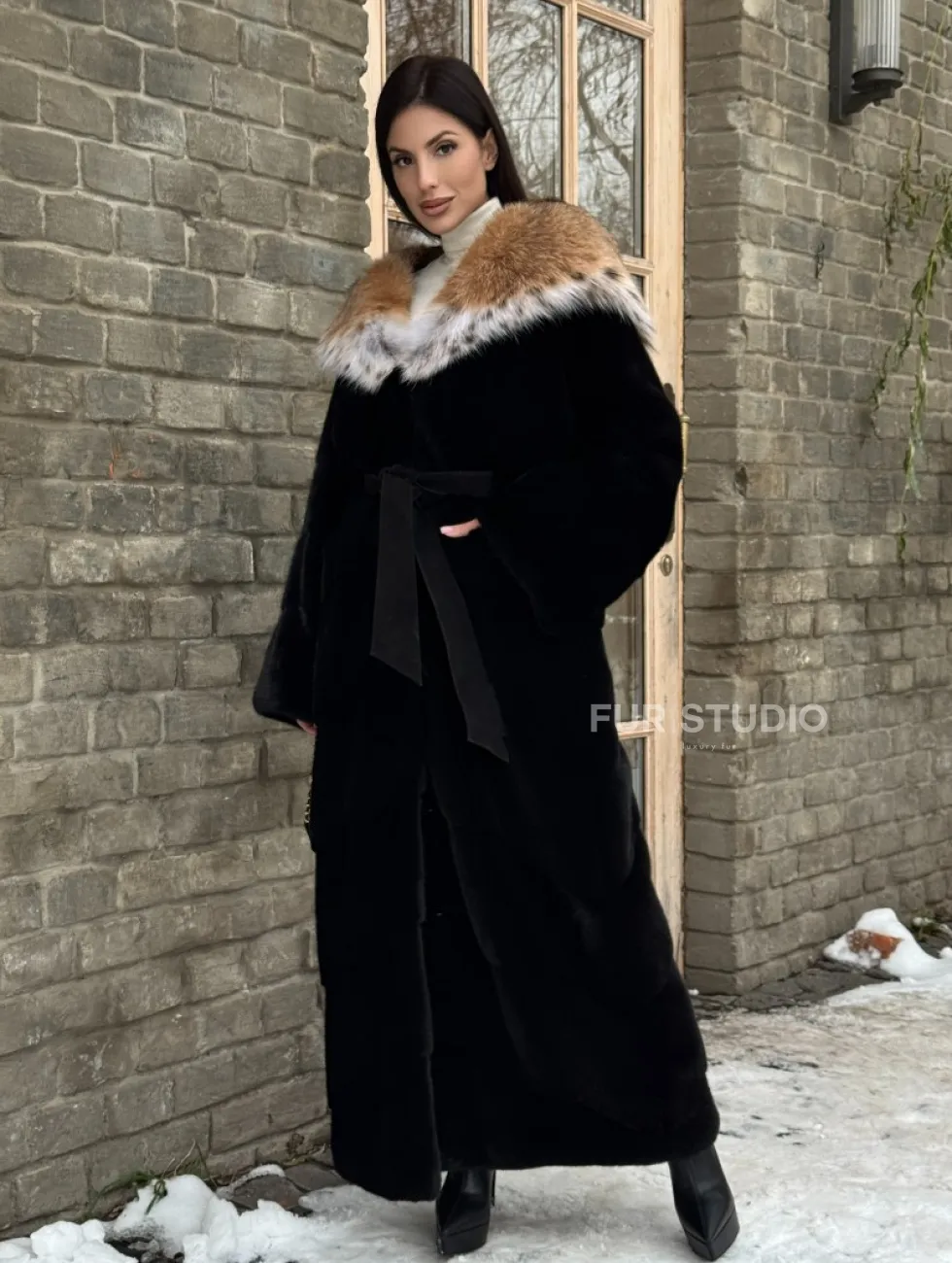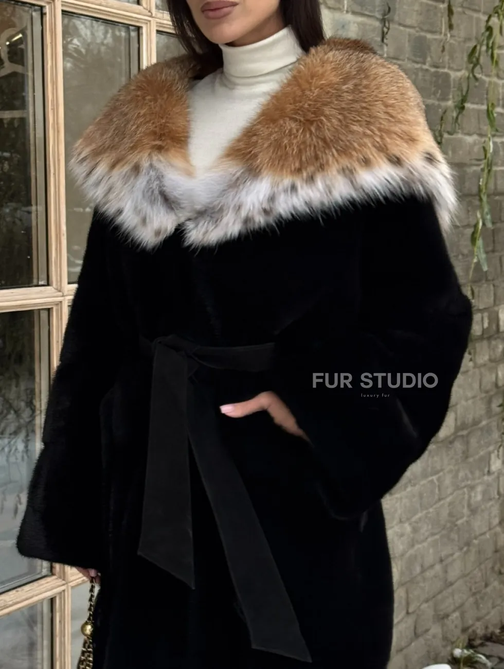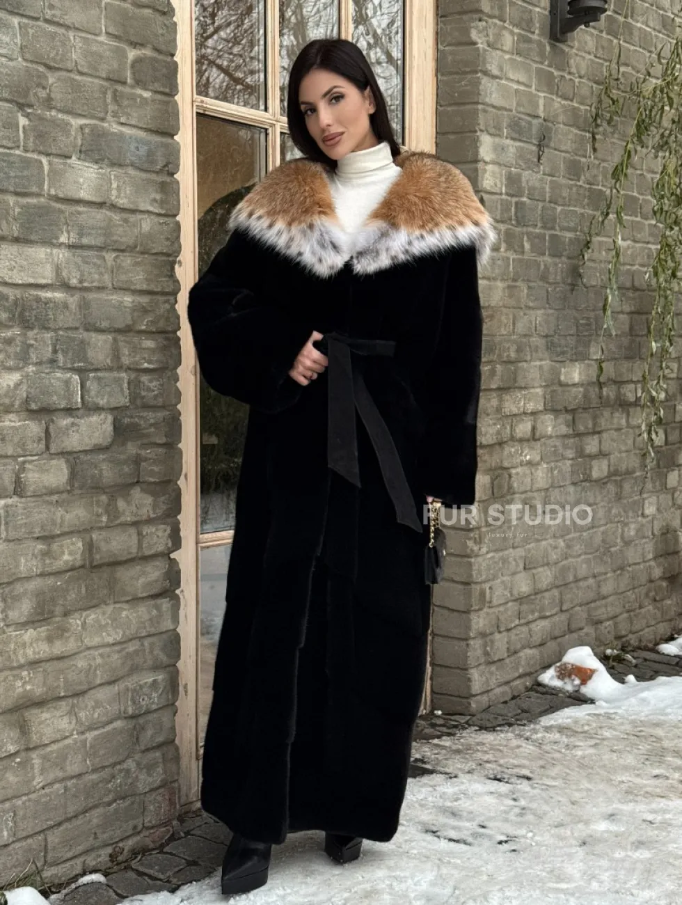 Черная длинная шуба из норки с капюшоном из меха рыси доступна для покупки в нашем шоуруме Furs Studio в Чите. У нас так же есть доставка во все города России. Добавьте немного роскоши в свой гардероб с этой шубой, которая будет служить вам многие годы.