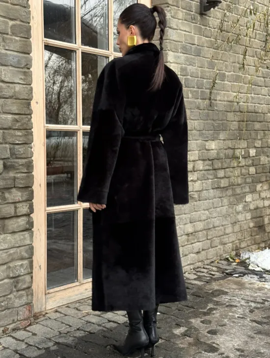 Мех данной шубы аукционная норка, цвет черный. Предлагается в размерах от 42 до 50. Длина модели 135-140 см, что выгодно подчеркивает фигуру девушек. Эта модель идеально подойдет для девушек и женщин, предпочитающих роскошные натуральные меха.