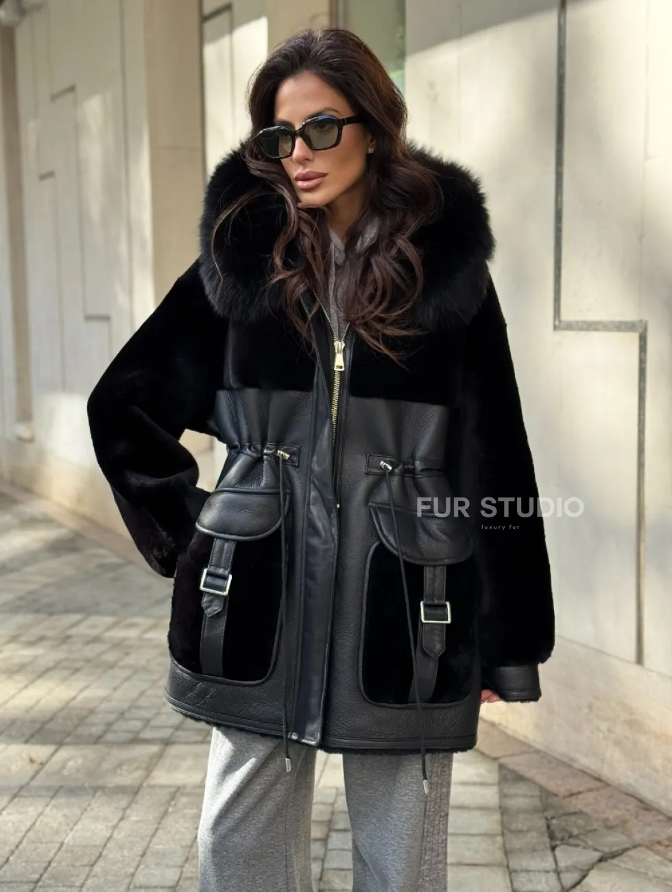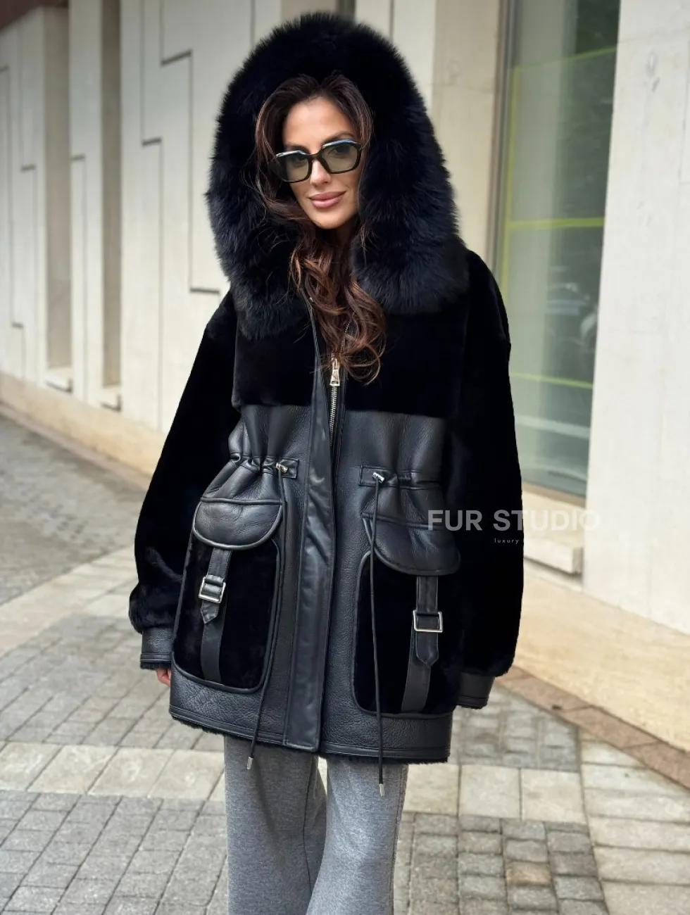 Черная дубленка с капюшоном доступна для покупки в нашем шоуруме Furs Studio в Чите, а также предлагается удобная доставка во все города России. Обогатите свой гардероб этой дубленкой, которая прослужит вам многие годы, добавив немного роскоши в ваш повседневный образ.