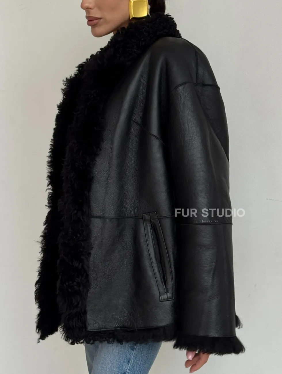Черная двусторонняя женская дубленка зима 2025. Модель предлагается в размерах от 42 до 48. Оптимальная длина моделей 60-65 см подчеркивает линии вашей фигуры. Эта дубленка станет неотъемлемой частью гардероба для тех, кто предпочитает роскошь и утонченность натуральной кожи.