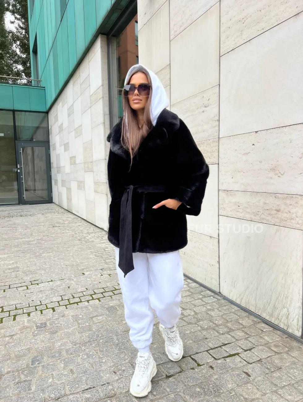 Черная короткая шуба из плюшевой норки Velvet с английским воротником – выбор женщин, которые разбираются в моде. Черный цвет выгодно оттенит цвет волос и глаз хозяйки. Широкие рукава подчеркнут изящество кистей. Удобные карманы позаботятся о комфорте ручек в непогоду. Оригинальный пояс выгодно очертит талию, делая ее изящной. Роскошный английский воротник подчеркнет изгибы шеи.