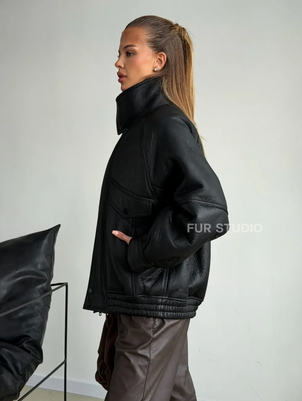 Черная натуральная дубленка из овчины. Модель предлагается в размерах от 42 до 48. Оптимальная длина моделей 60-65 см подчеркивает линии вашей фигуры. Эта дубленка станет неотъемлемой частью гардероба для тех, кто предпочитает роскошь и утонченность натуральной кожи.