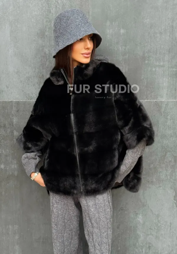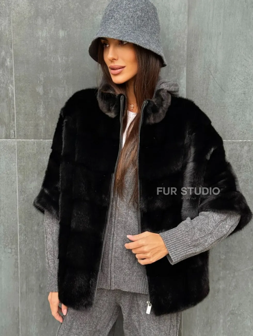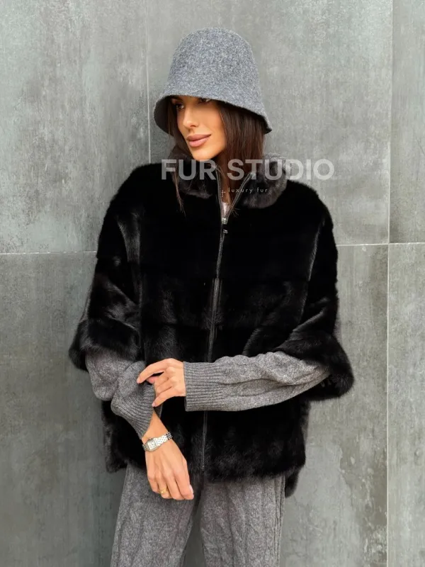 Мех данной шубы аукционная норка , цвет черный. Предлагается в размерах от 40 до 48 (oversize). Длина модели 60-65 см, что выгодно подчеркивает фигуру девушек. Эта модель идеально подойдет для девушек и женщин, предпочитающих роскошные натуральные меха.