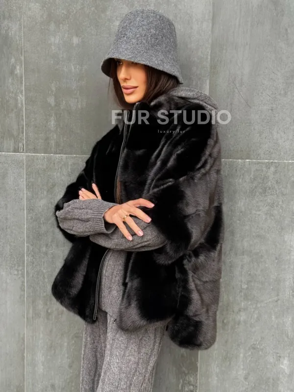 Черная норковая кофта доступна для покупки в нашем шоуруме Furs Studio в Чите. У нас так же есть доставка во все города России. Добавьте немного роскоши в свой гардероб с этой шубой, которая будет служить вам многие годы.