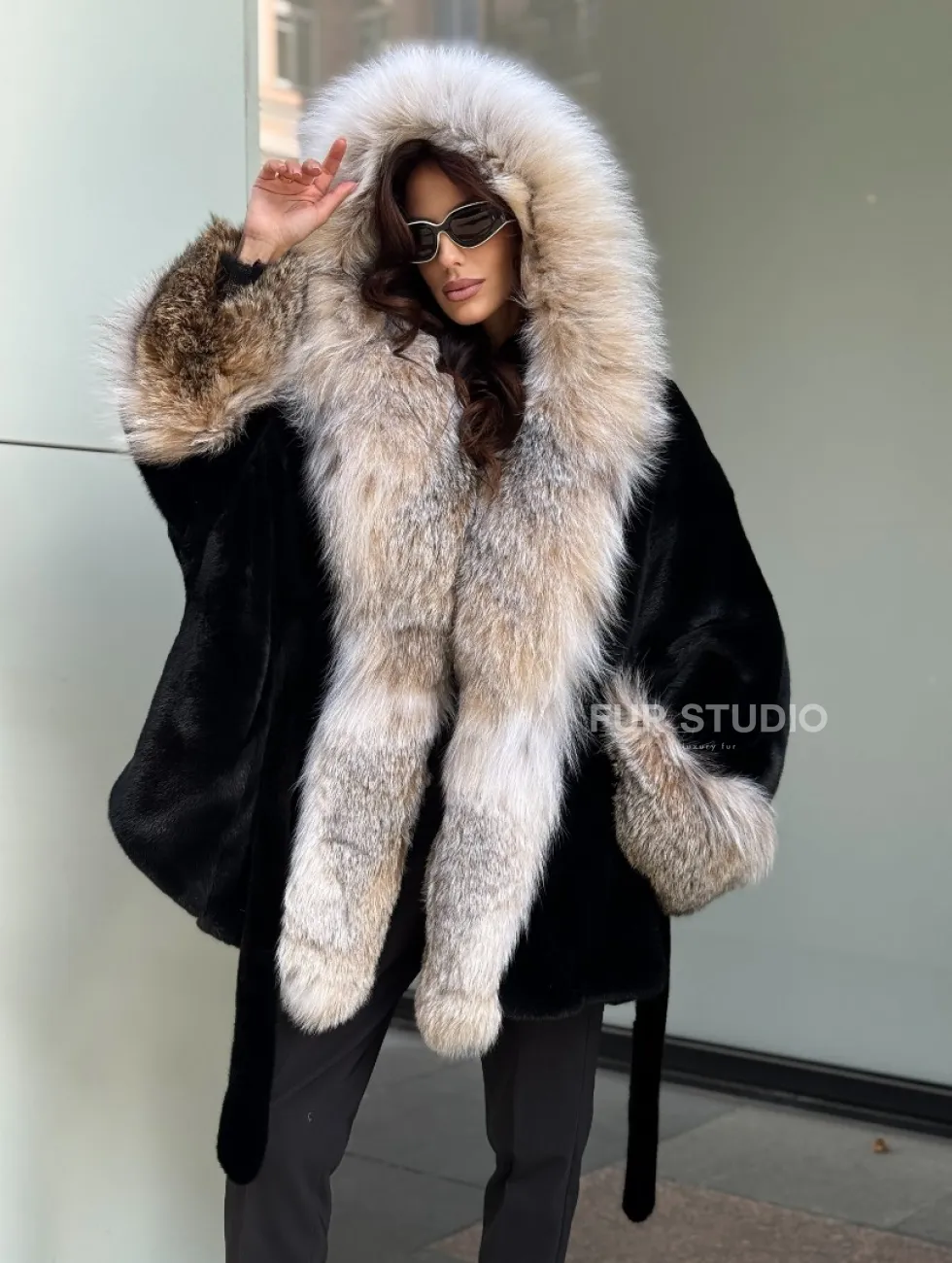 Черная норковая шуба PREMIUM COLLECTION с отделкой из меха канадской рыси доступна для покупки в нашем шоуруме Furs Studio в Чите. У нас так же есть доставка во все города России. Добавьте немного роскоши в свой гардероб с этой шубой, которая будет служить вам многие годы.