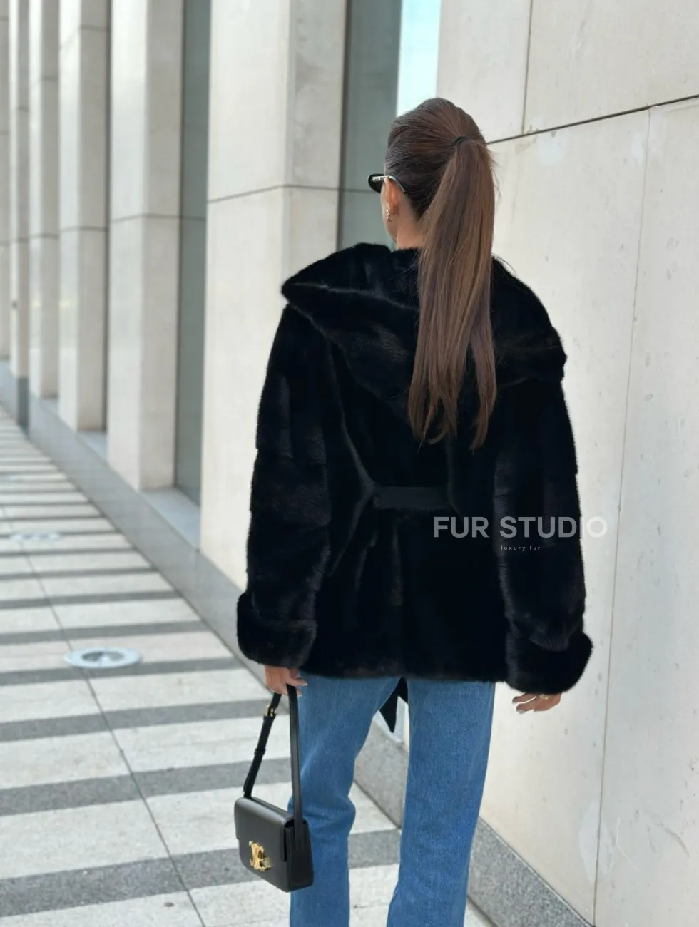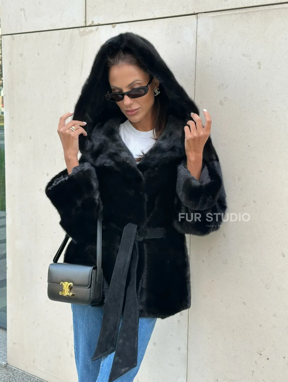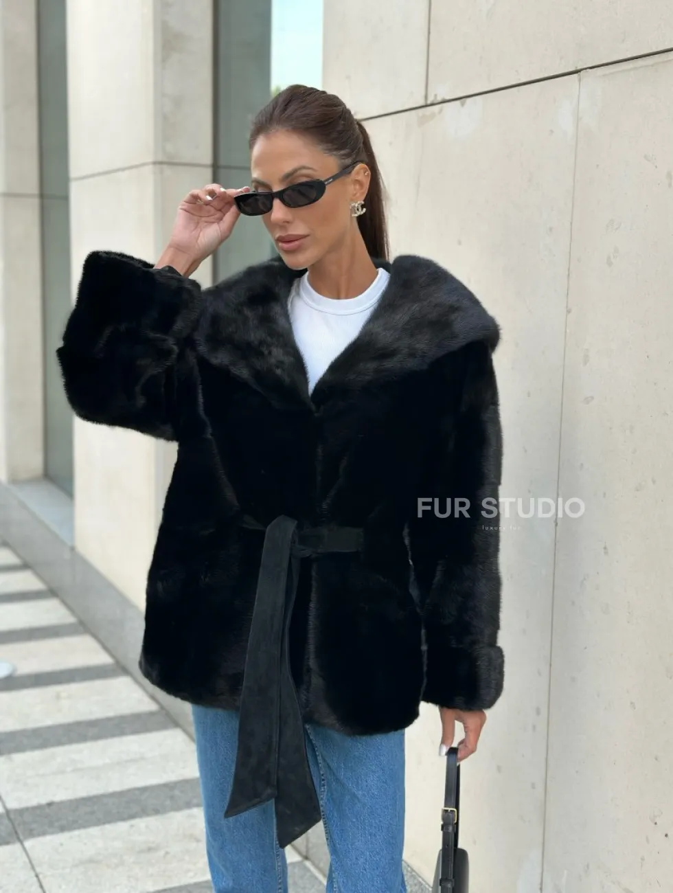 Черная норковая шуба с капюшоном - автоледи доступна для покупки в нашем шоуруме Furs Studio в Чите. У нас так же есть доставка во все города России. Добавьте немного роскоши в свой гардероб с этой шубой, которая будет служить вам многие годы.