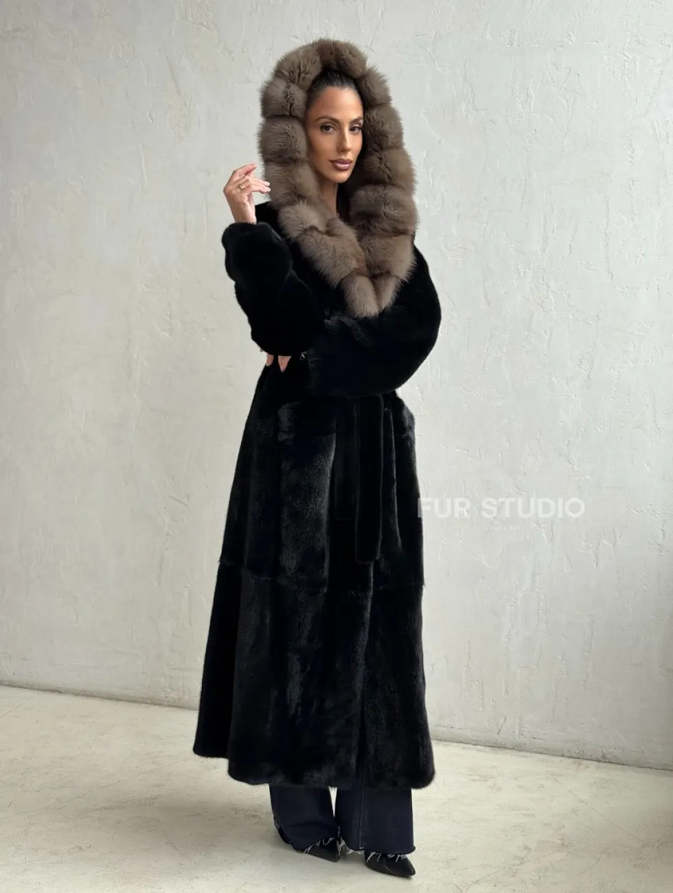 Черная норковая шуба с поясом - капюшон куница доступна для покупки в нашем шоуруме Furs Studio в Чите. У нас так же есть доставка во все города России. Добавьте немного роскоши в свой гардероб с этой шубой, которая будет служить вам многие годы.