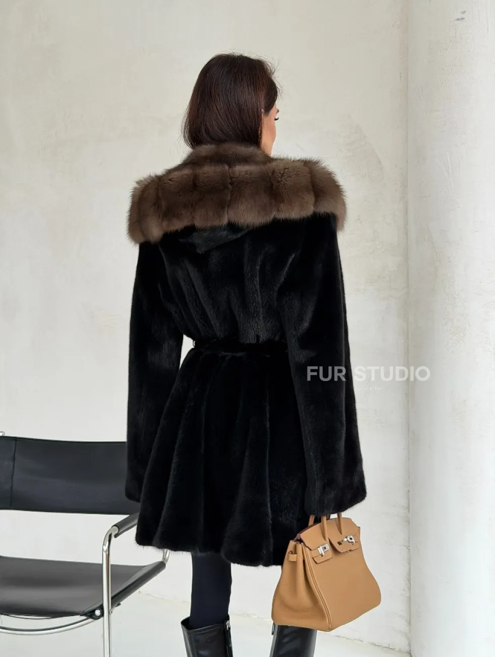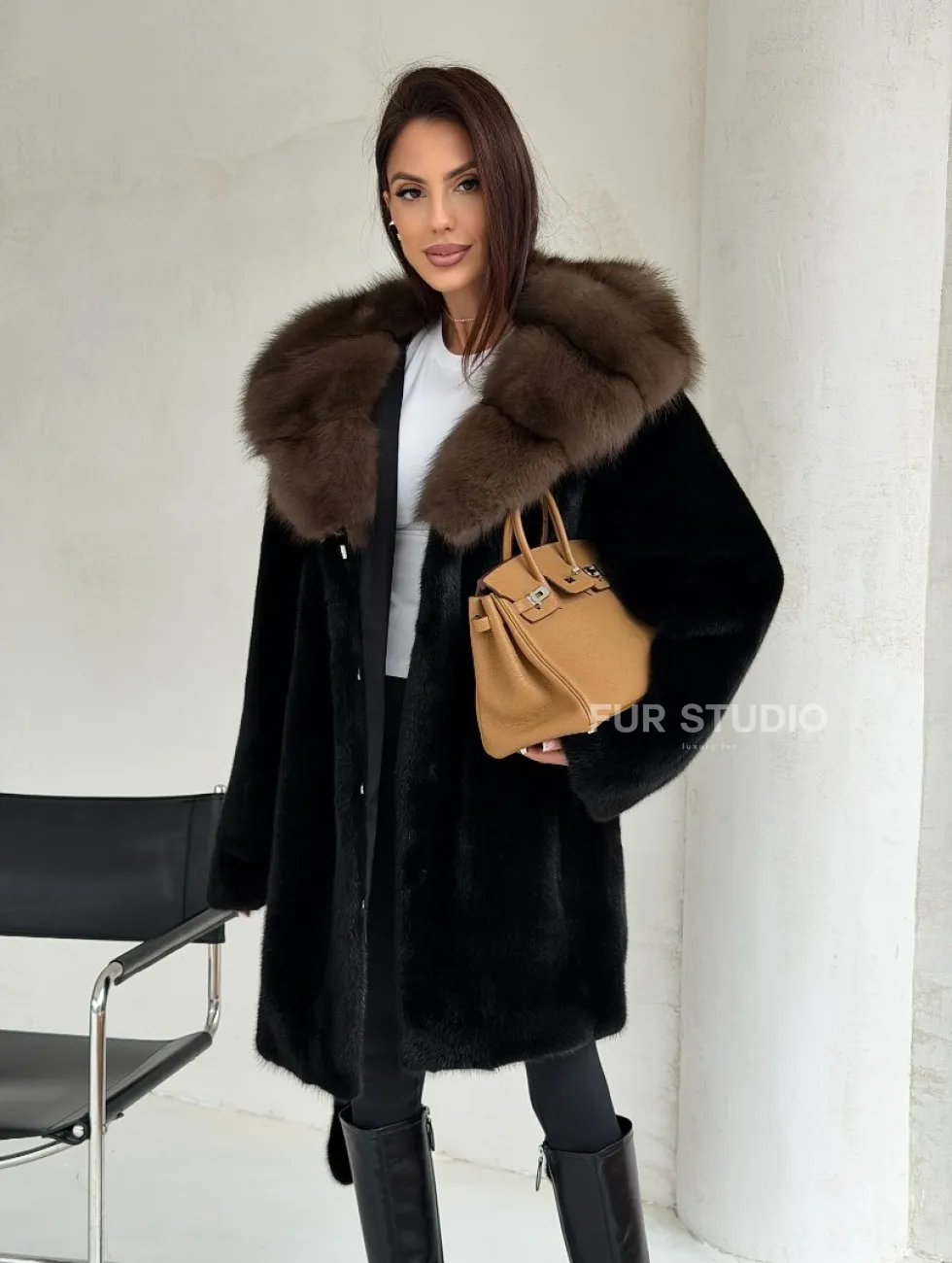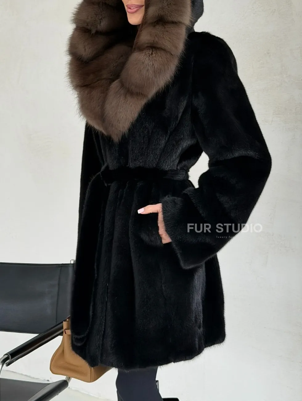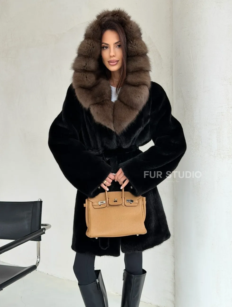 Черная норковая шуба средней длины - капюшон куница доступна для покупки в нашем шоуруме Furs Studio в Чите. У нас так же есть доставка во все города России. Добавьте немного роскоши в свой гардероб с этой шубой, которая будет служить вам многие годы.