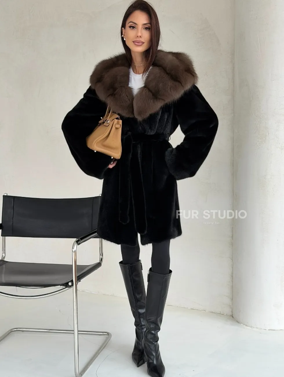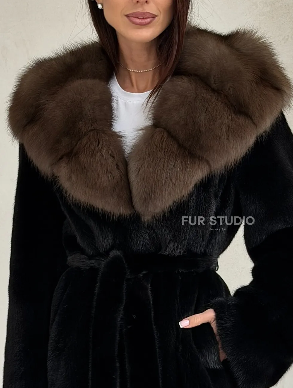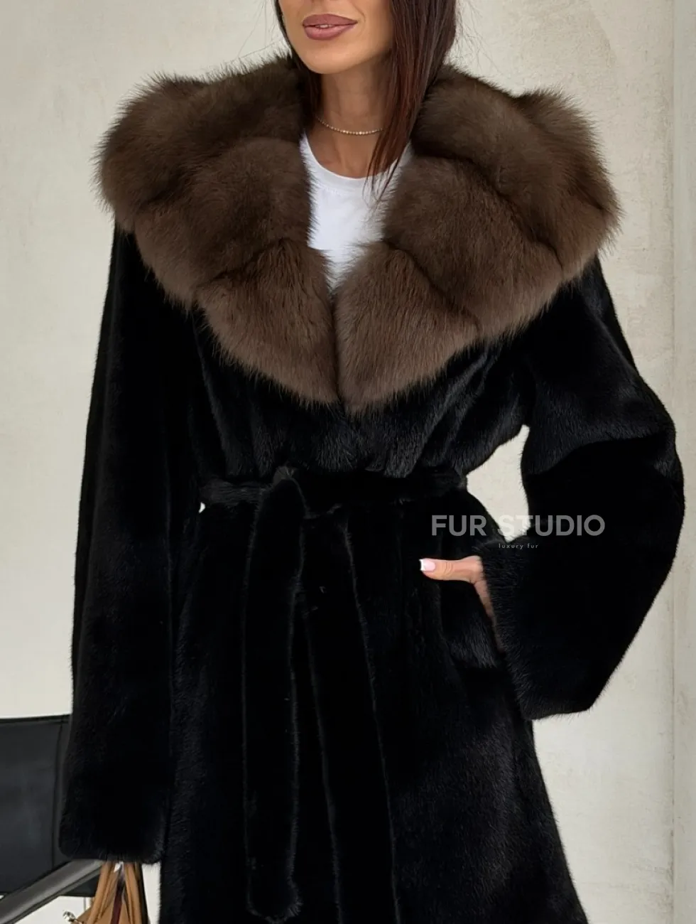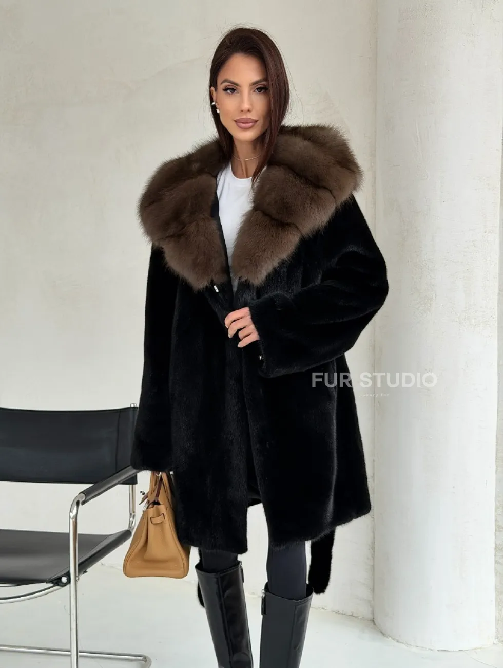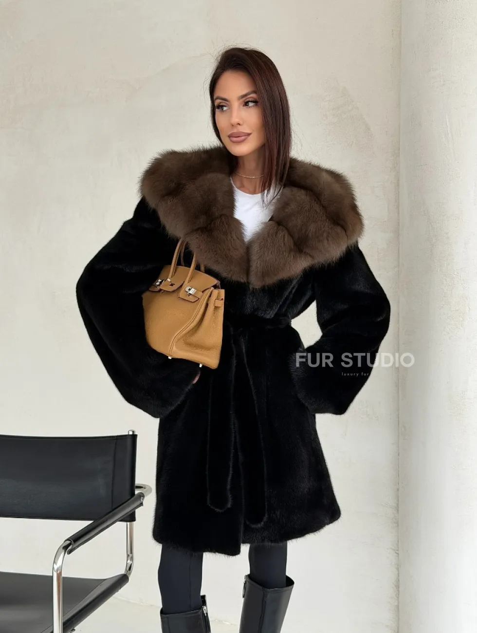 Черная норковая шуба средней длины - капюшон куница доступна для покупки в нашем шоуруме Furs Studio в Чите. У нас так же есть доставка во все города России. Добавьте немного роскоши в свой гардероб с этой шубой, которая будет служить вам многие годы.