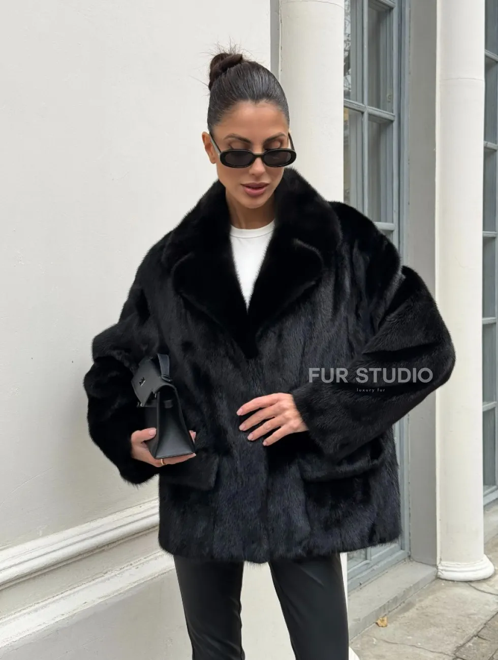 Черная норковая шуба - жакет с английским воротником доступна для покупки в нашем шоуруме Furs Studio в Чите. У нас так же есть доставка во все города России. Добавьте немного роскоши в свой гардероб с этой шубой, которая будет служить вам многие годы.