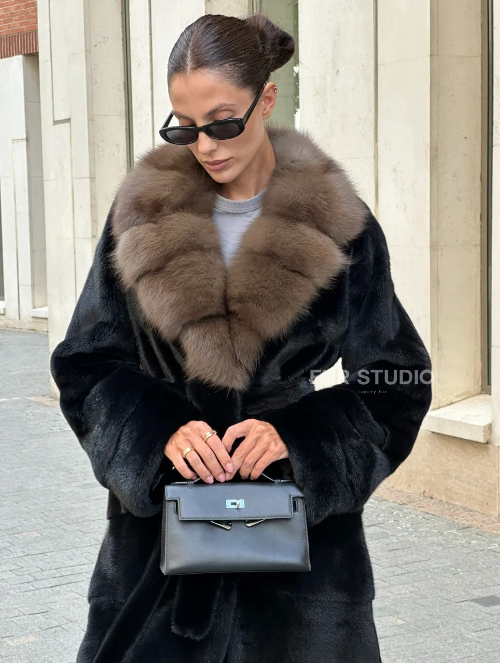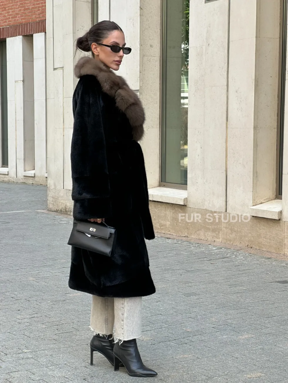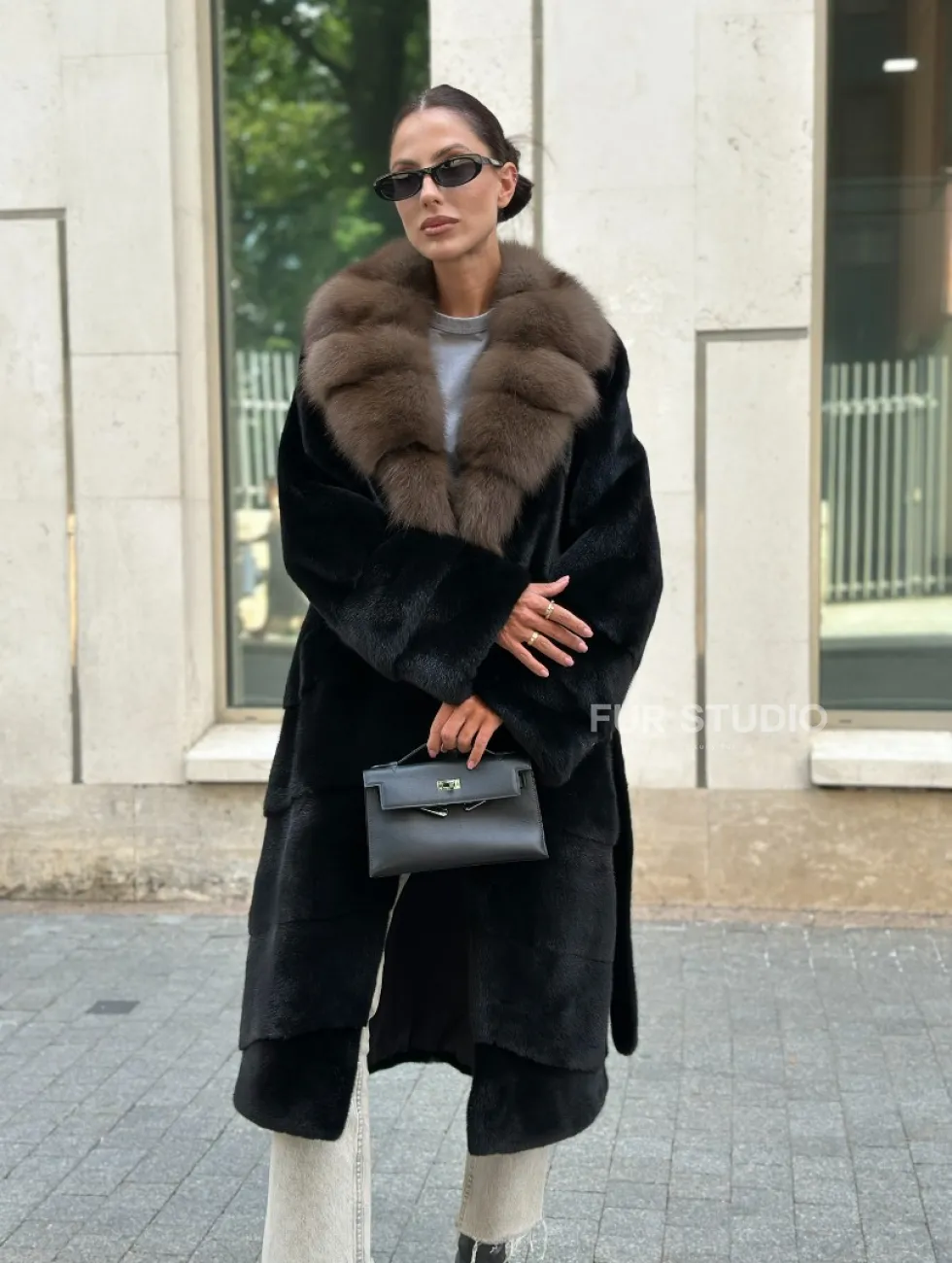 Черная шуба BLACK NAFA с английским воротником из куницы доступна для покупки в нашем шоуруме Furs Studio в Чите. У нас так же есть доставка во все города России. Добавьте немного роскоши в свой гардероб с этой шубой, которая будет служить вам многие годы.