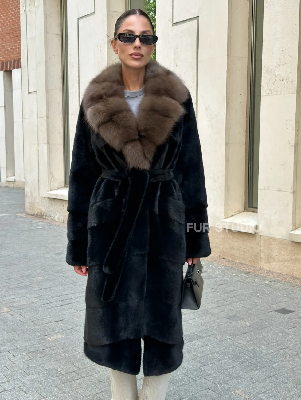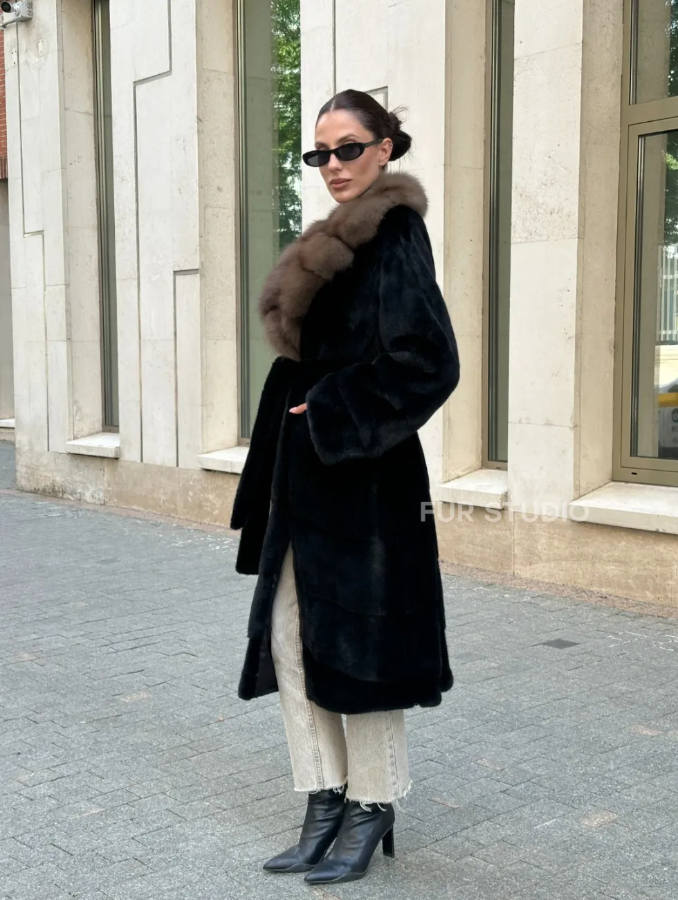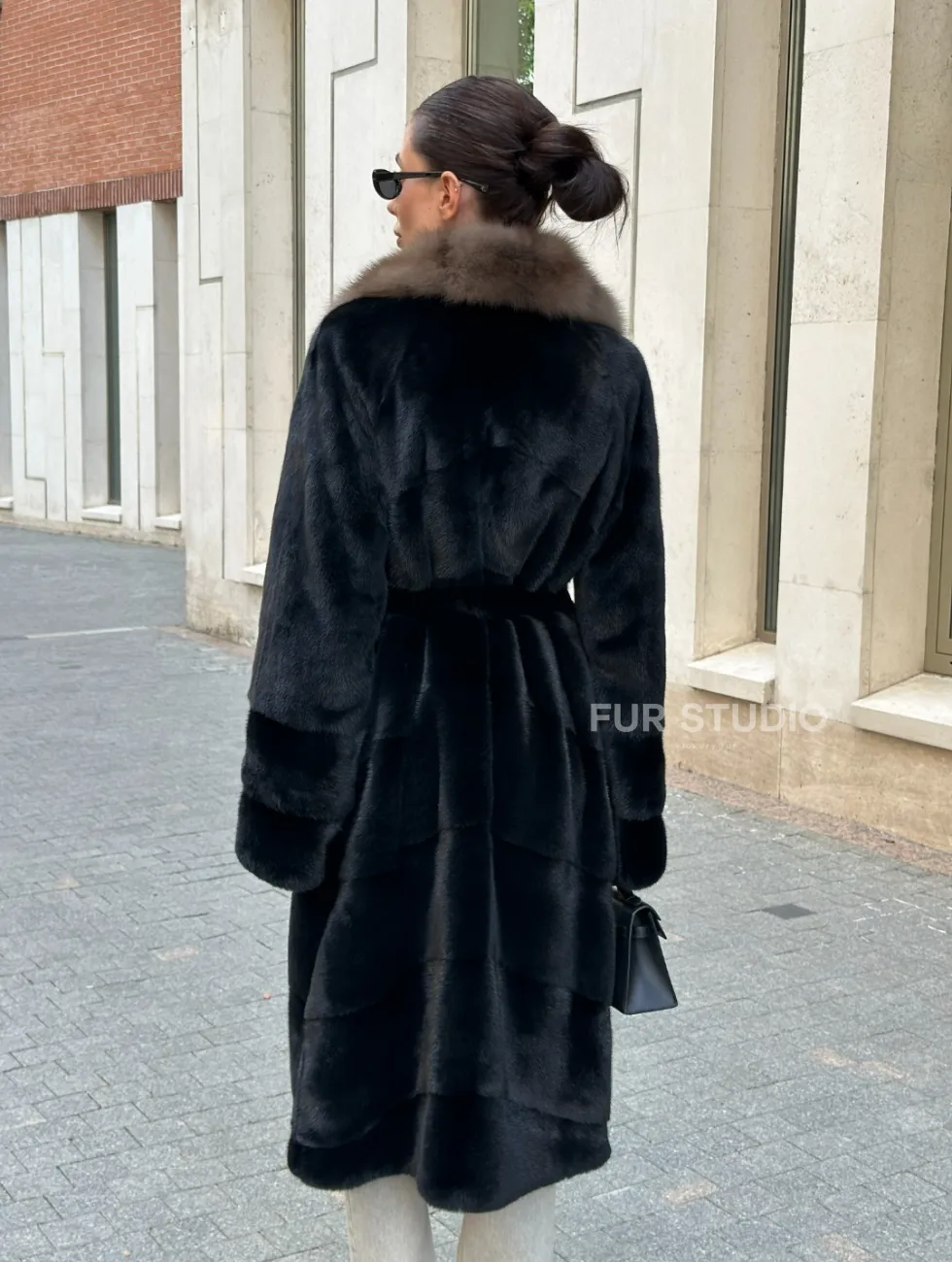 Черная шуба BLACK NAFA с английским воротником из куницы доступна для покупки в нашем шоуруме Furs Studio в Чите. У нас так же есть доставка во все города России. Добавьте немного роскоши в свой гардероб с этой шубой, которая будет служить вам многие годы.