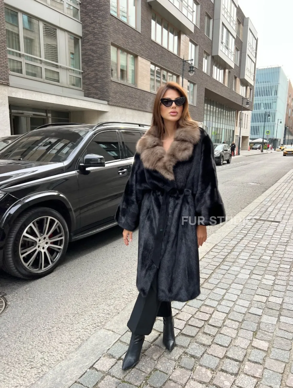 Черная шуба из аукционной норки с воротником из куницы – восхищенные взгляды будут прикованы к вам. Модель поражает изысканностью, стилем. В изделии будете выглядеть, как с иголочки. Отличный выбор девушек, любящих минимальный стиль, но знающих толк в моде.