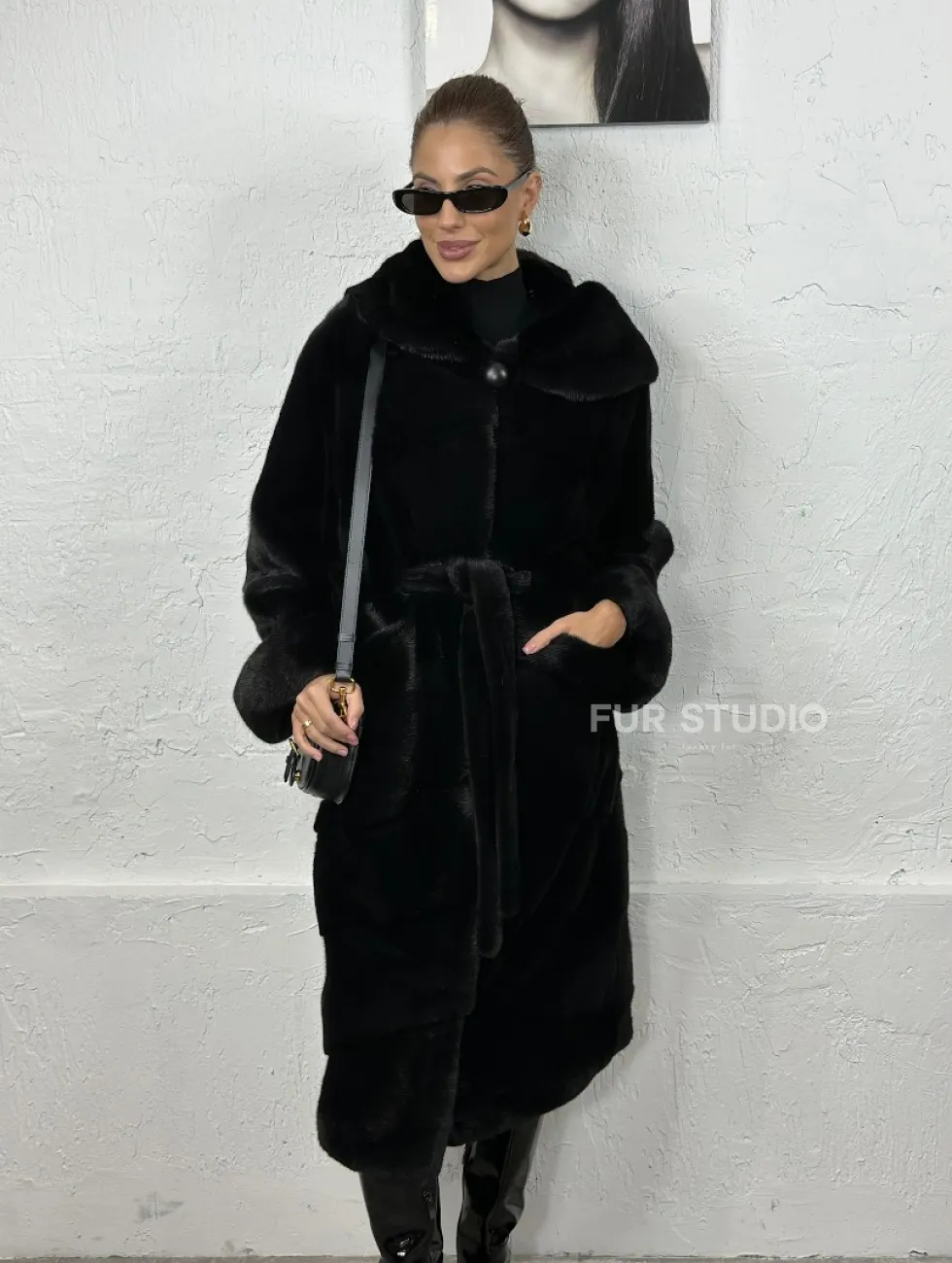 Мех данной шубы аукционная норка , цвет черный. Предлагается в размерах от 42 до 52. Длина модели 110-115 см, что выгодно подчеркивает фигуру девушек. Эта модель идеально подойдет для девушек и женщин, предпочитающих роскошные натуральные меха.