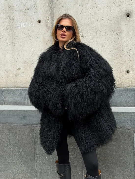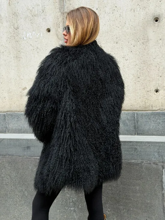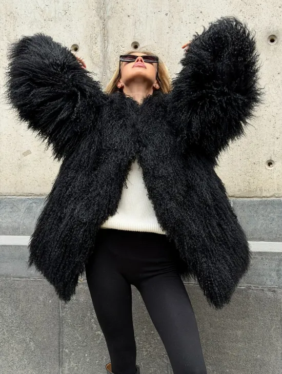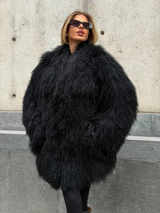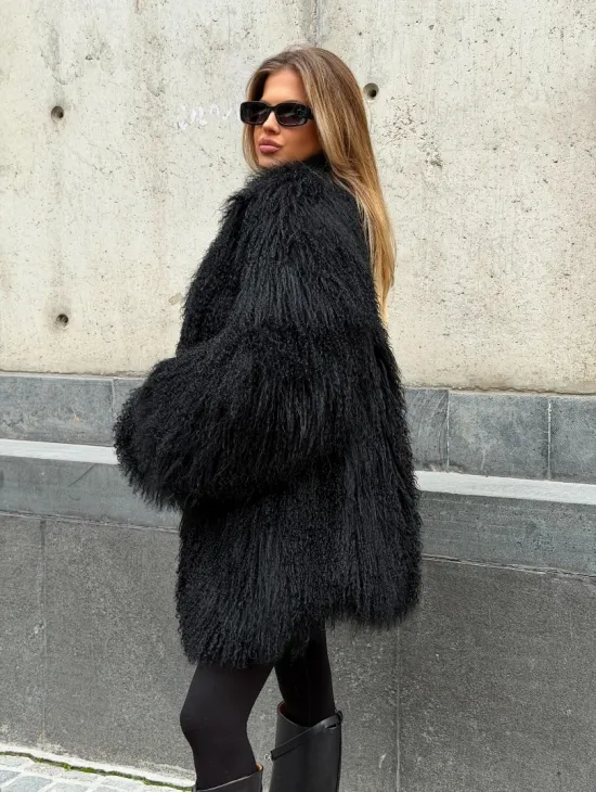 Мех данной шубы лама, цвет черный. Предлагается в размерах от 42 до 46. Длина модели 55-60 см, что выгодно подчеркивает фигуру девушек. Эта модель идеально подойдет для девушек и женщин, предпочитающих роскошные натуральные меха.