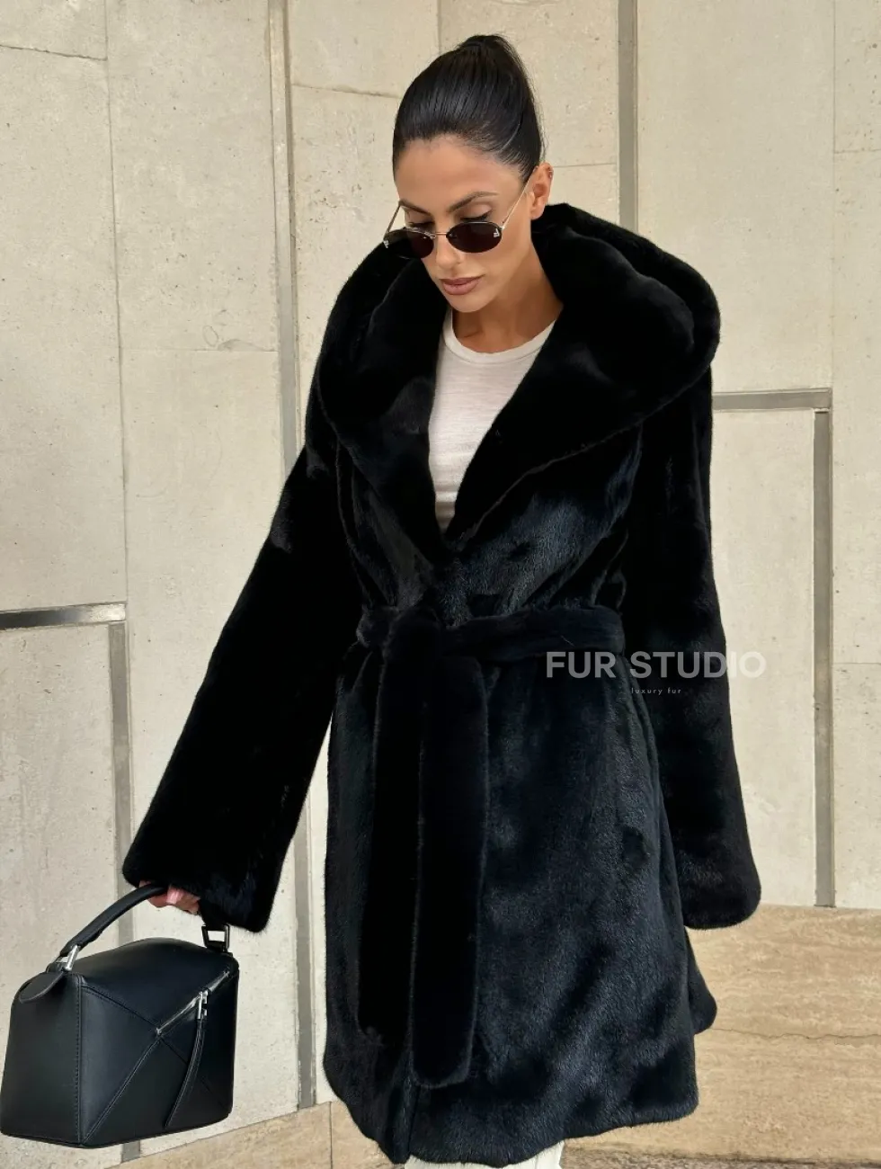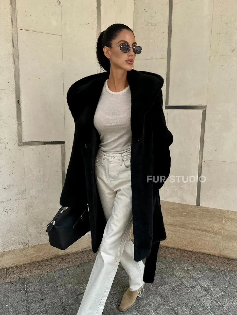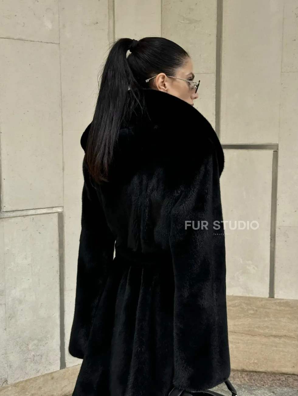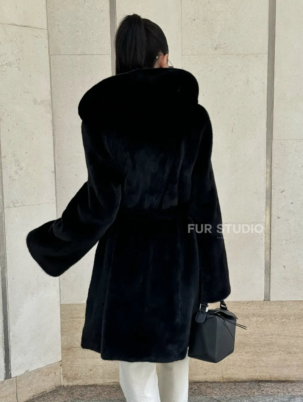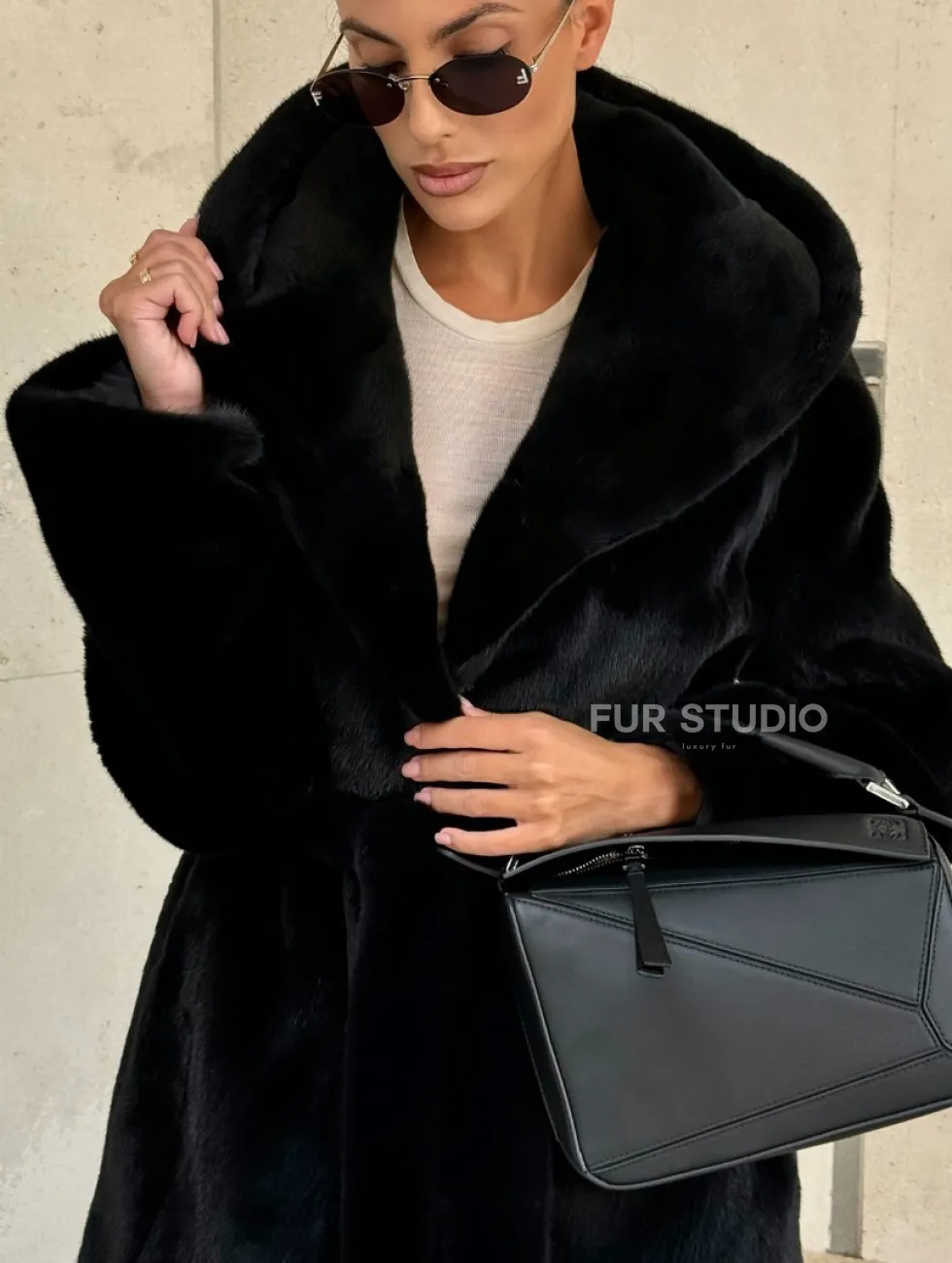Черная шуба с капюшоном из меха норки BlackGlama - роспуск доступна для покупки в нашем шоуруме Furs Studio в Чите. У нас так же есть доставка во все города России. Добавьте немного роскоши в свой гардероб с этой шубой, которая будет служить вам многие годы.