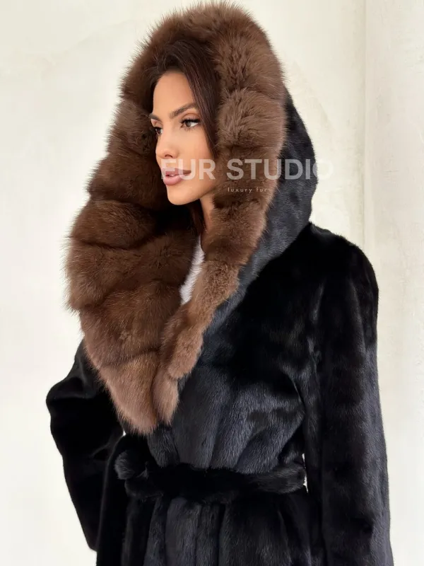 Черная шуба в роспуск с капюшоном соболь доступна для покупки в нашем шоуруме Furs Studio в Чите. У нас так же есть доставка во все города России. Добавьте немного роскоши в свой гардероб с этой шубой, которая будет служить вам многие годы.