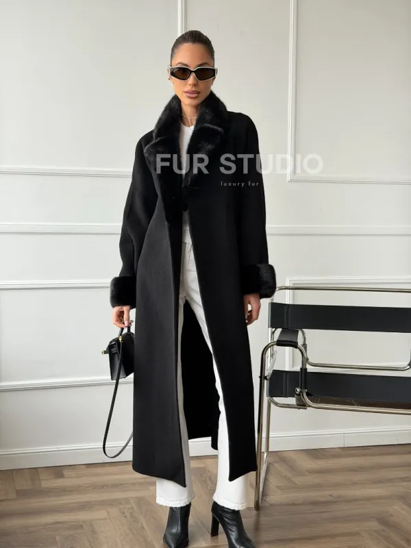 Черное пальто с мехом норки 102666