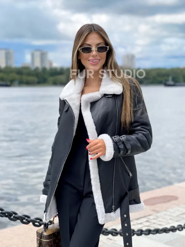 Черный авиатор на белой овчине 100225