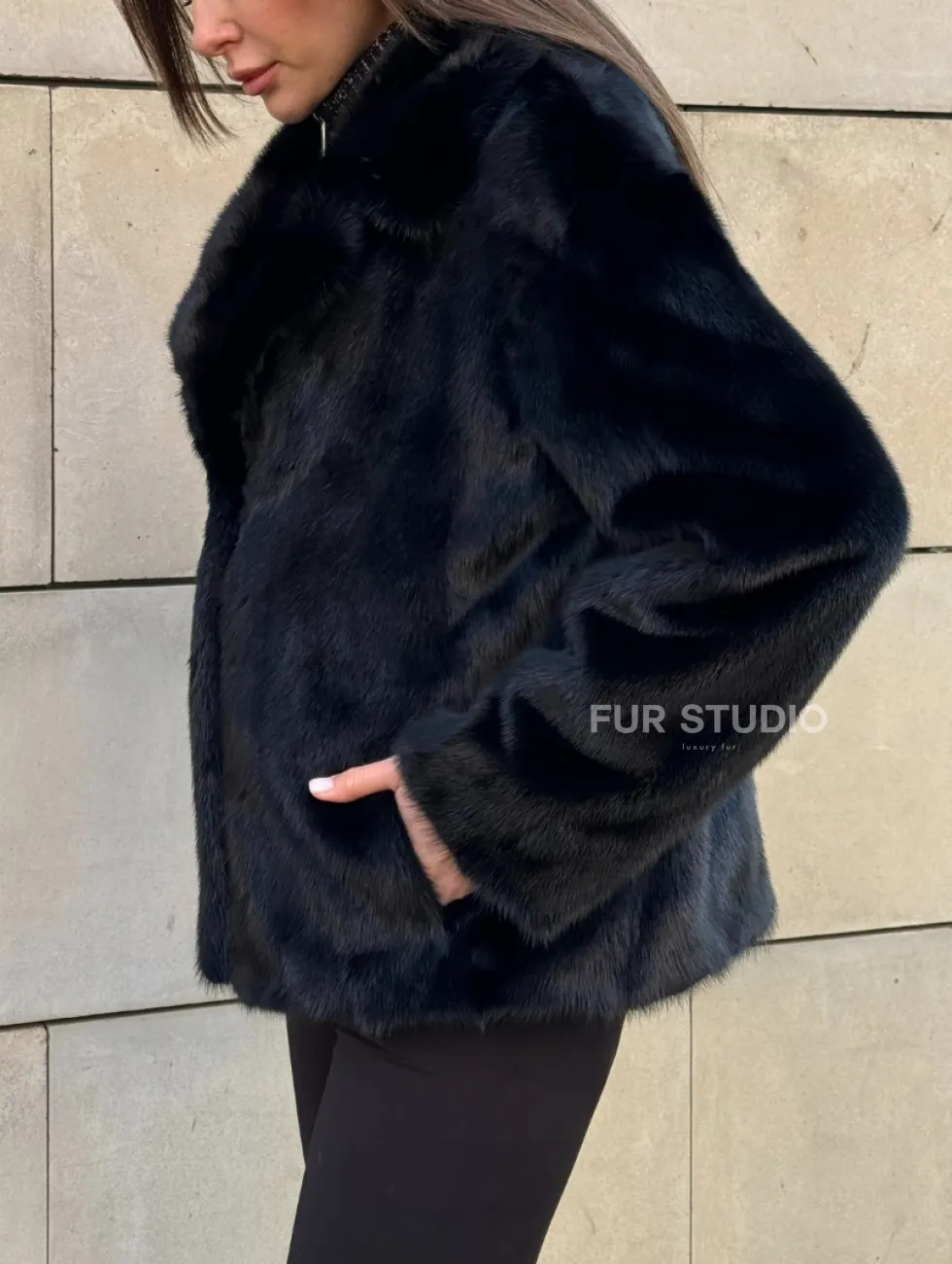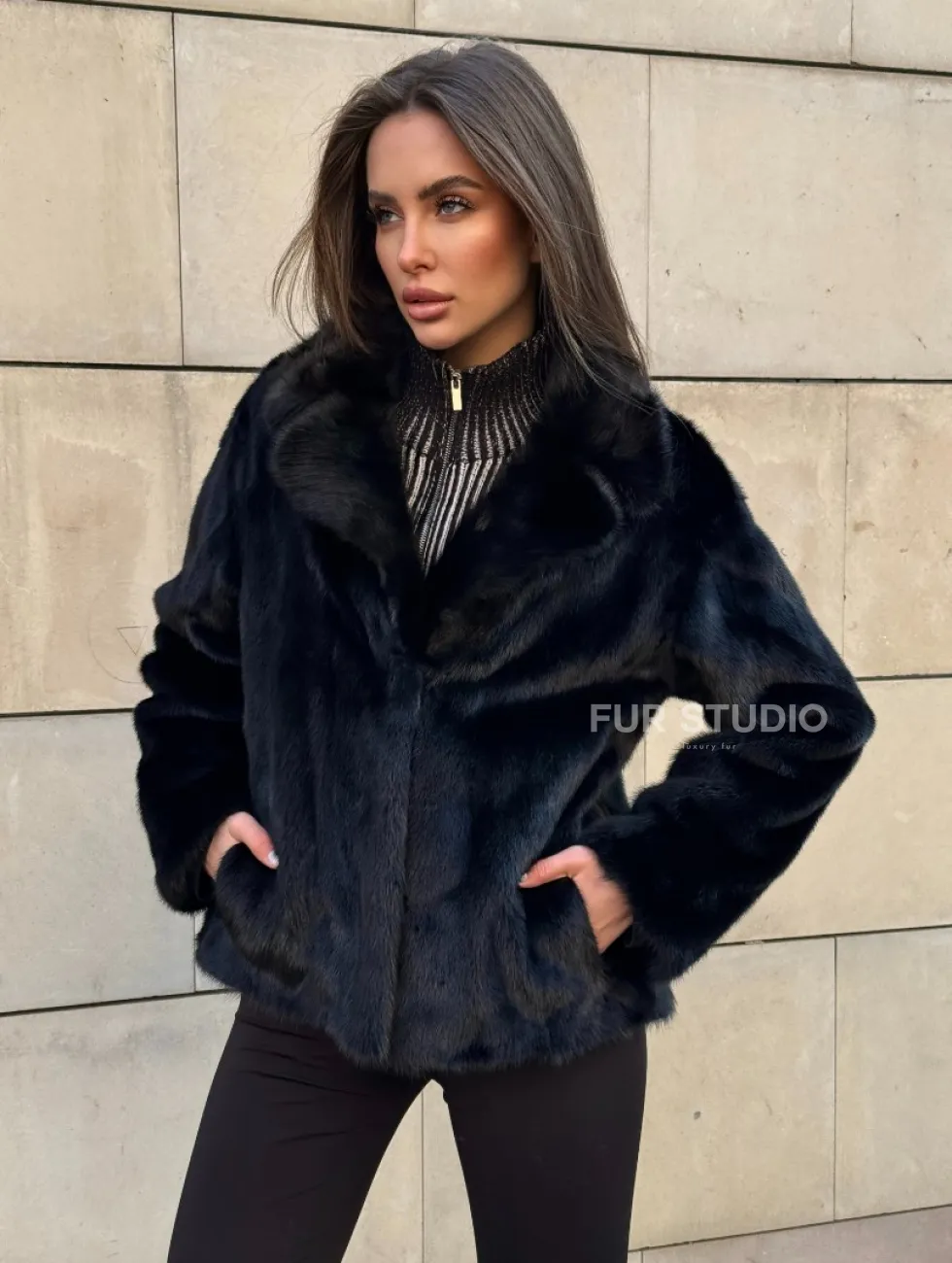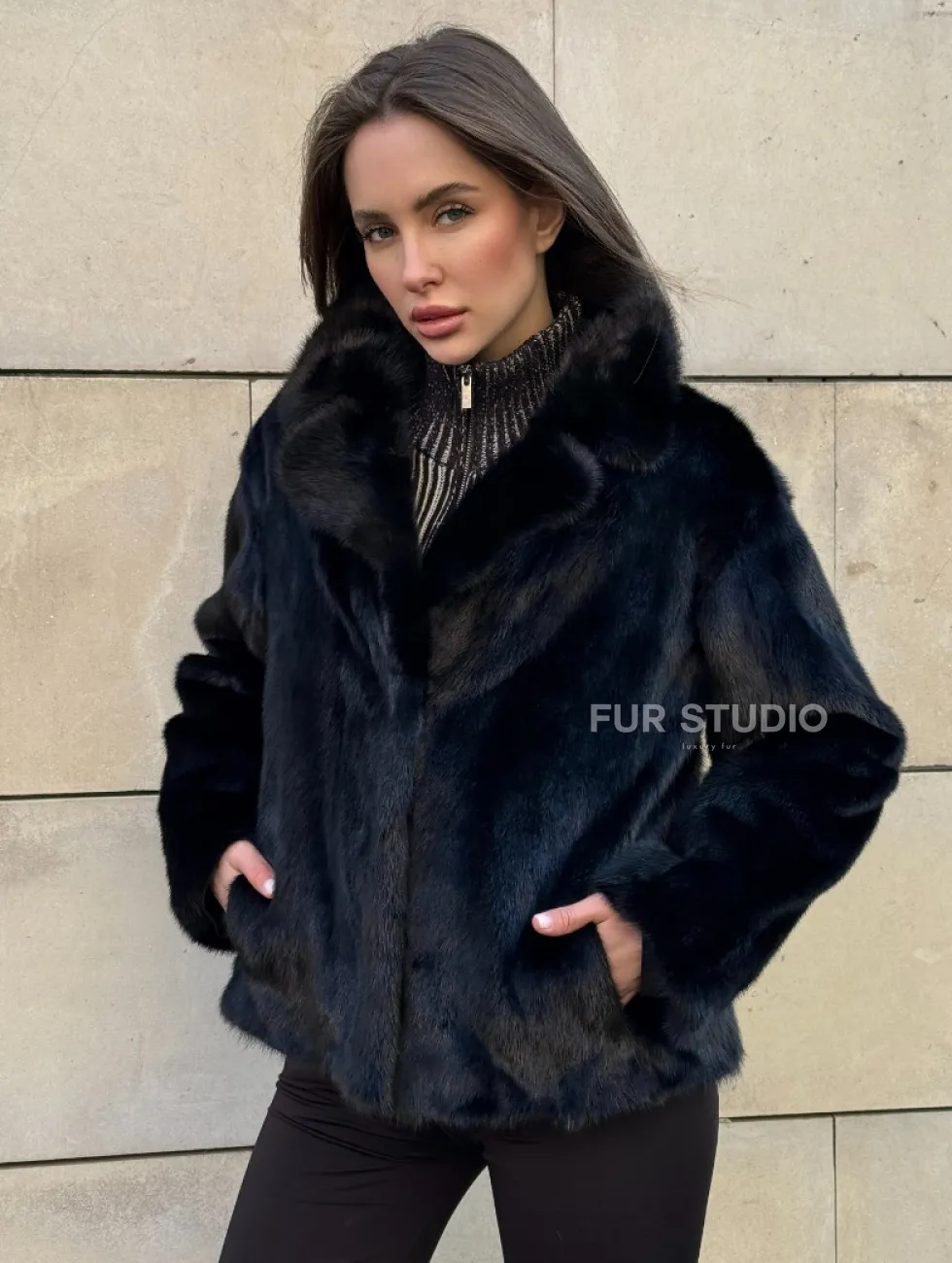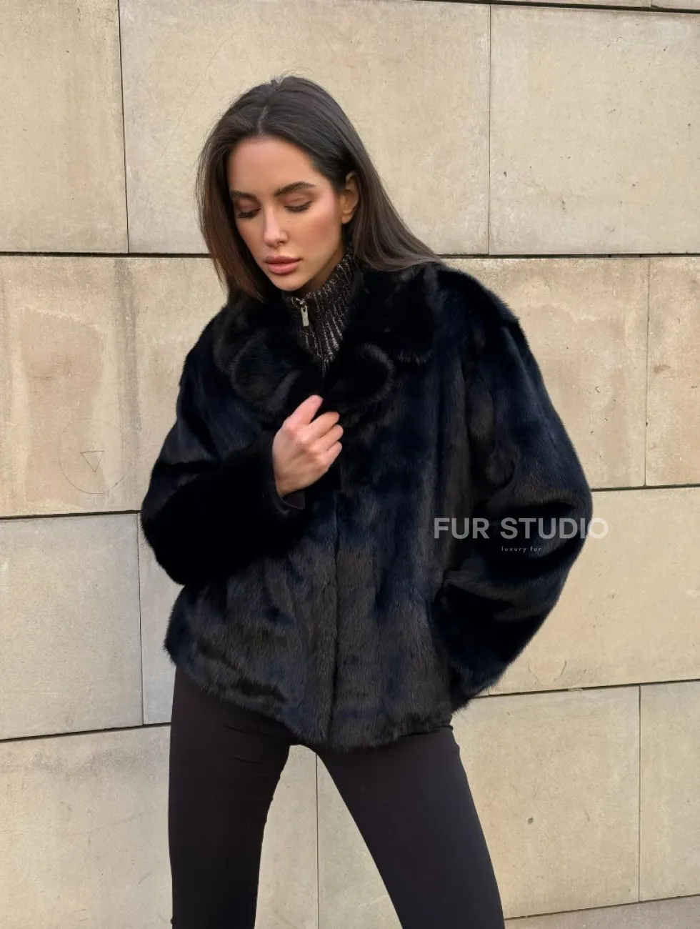 Черный норковый кроп - жакет с английским воротником доступна для покупки в нашем шоуруме Furs Studio в Чите. У нас так же есть доставка во все города России. Добавьте немного роскоши в свой гардероб с этой шубой, которая будет служить вам многие годы.