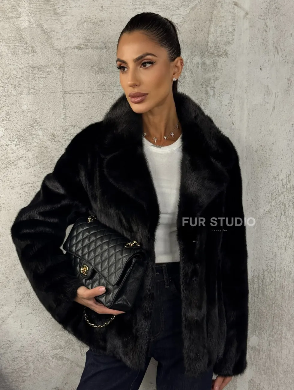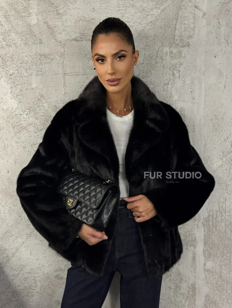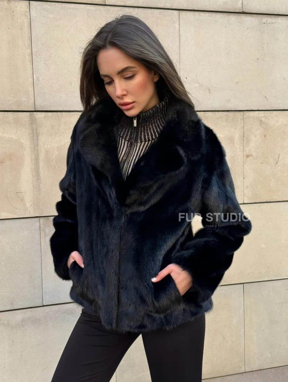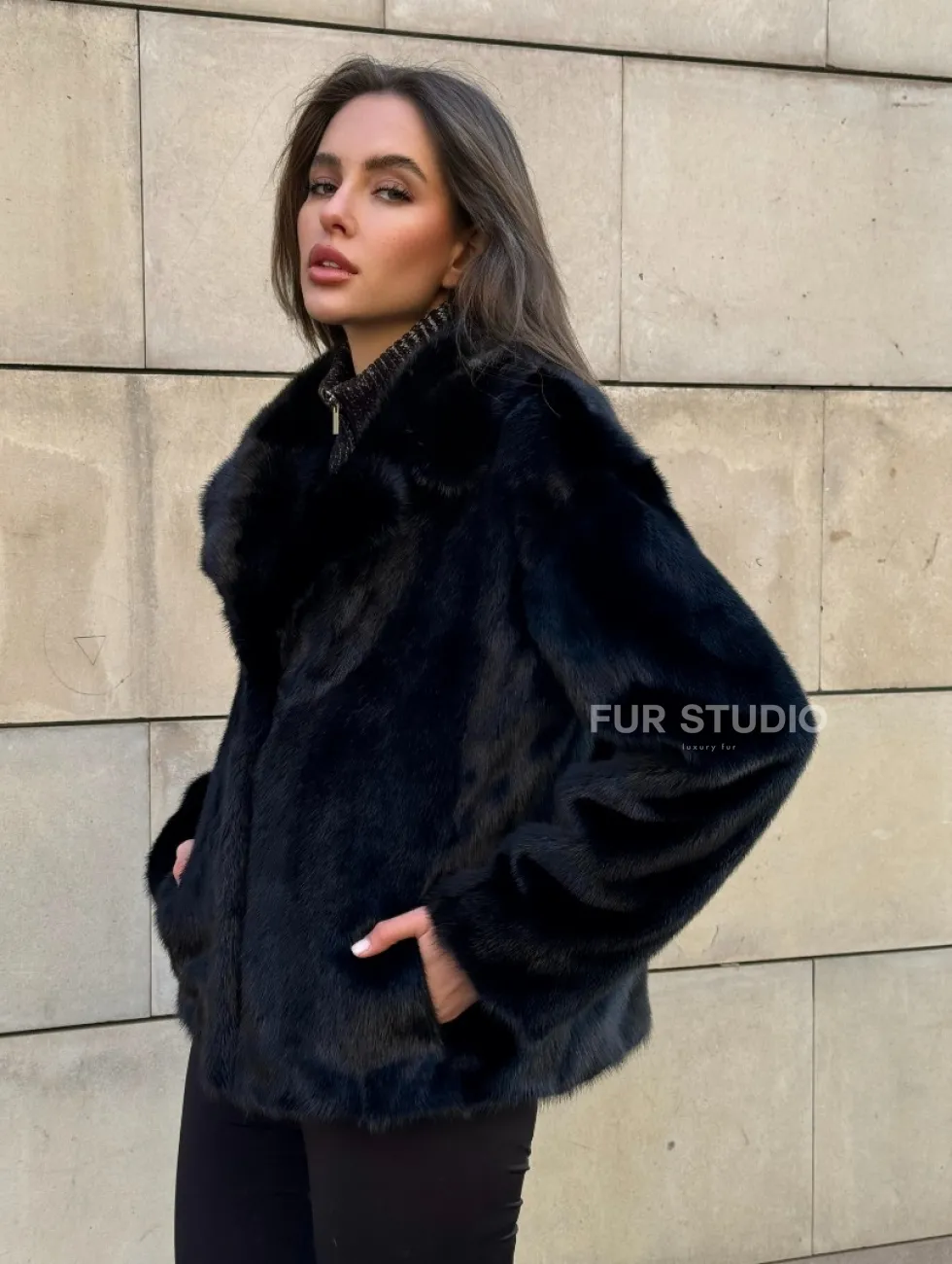 Черный норковый кроп - жакет с английским воротником доступна для покупки в нашем шоуруме Furs Studio в Чите. У нас так же есть доставка во все города России. Добавьте немного роскоши в свой гардероб с этой шубой, которая будет служить вам многие годы.