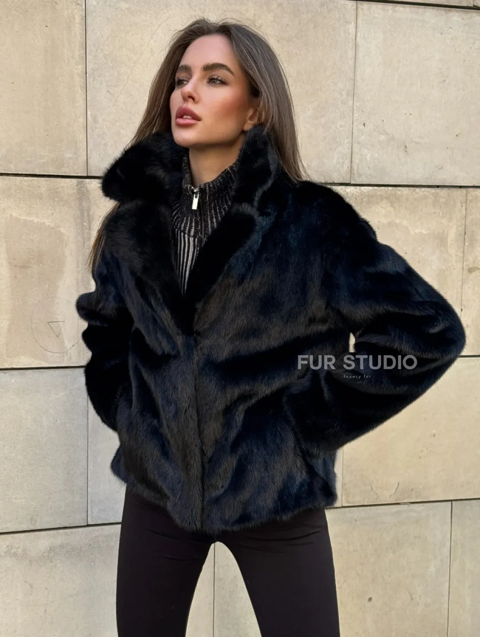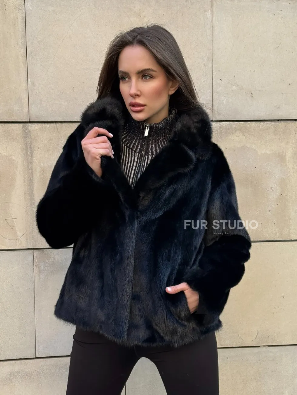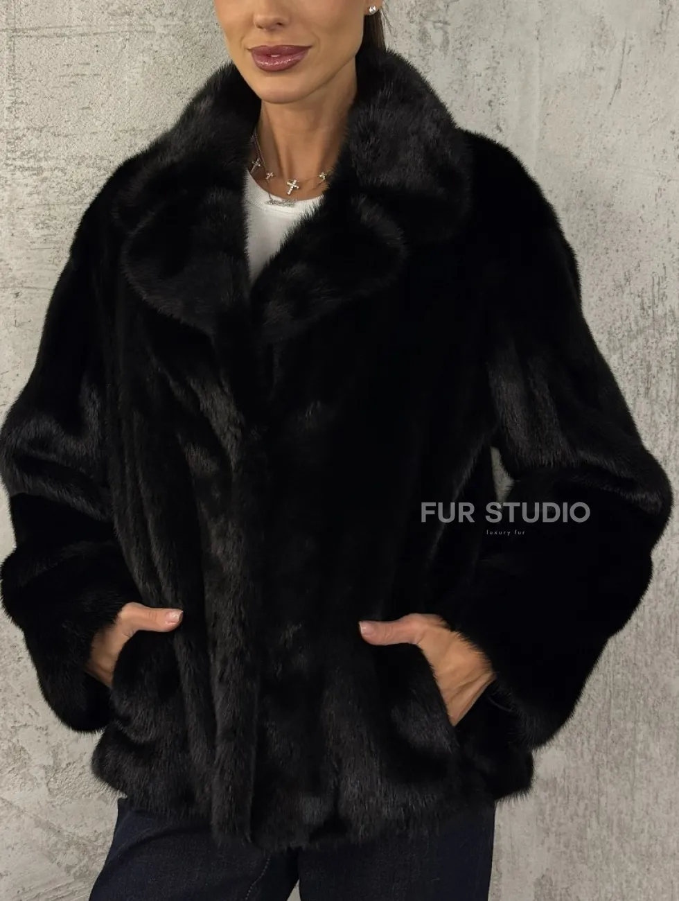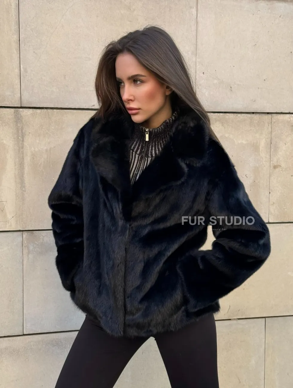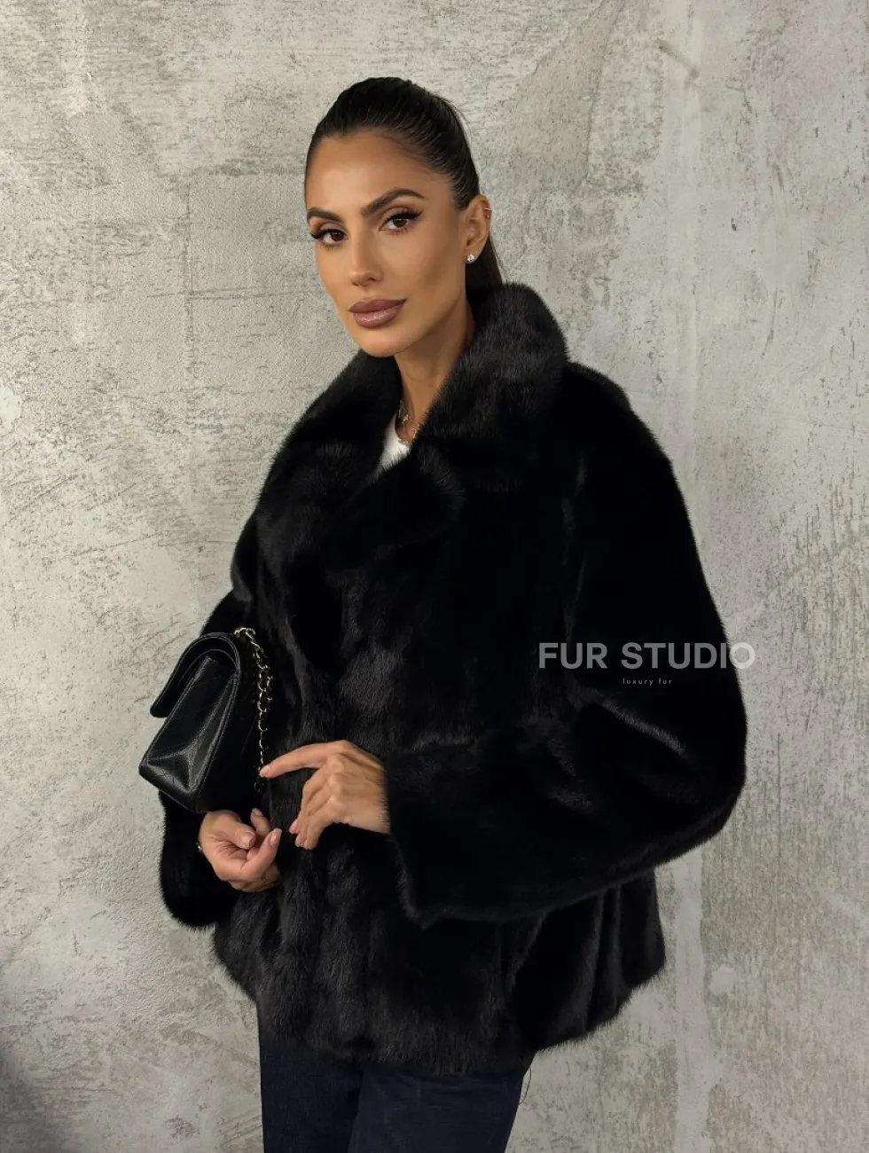 Черный норковый кроп - жакет с английским воротником доступна для покупки в нашем шоуруме Furs Studio в Чите. У нас так же есть доставка во все города России. Добавьте немного роскоши в свой гардероб с этой шубой, которая будет служить вам многие годы.