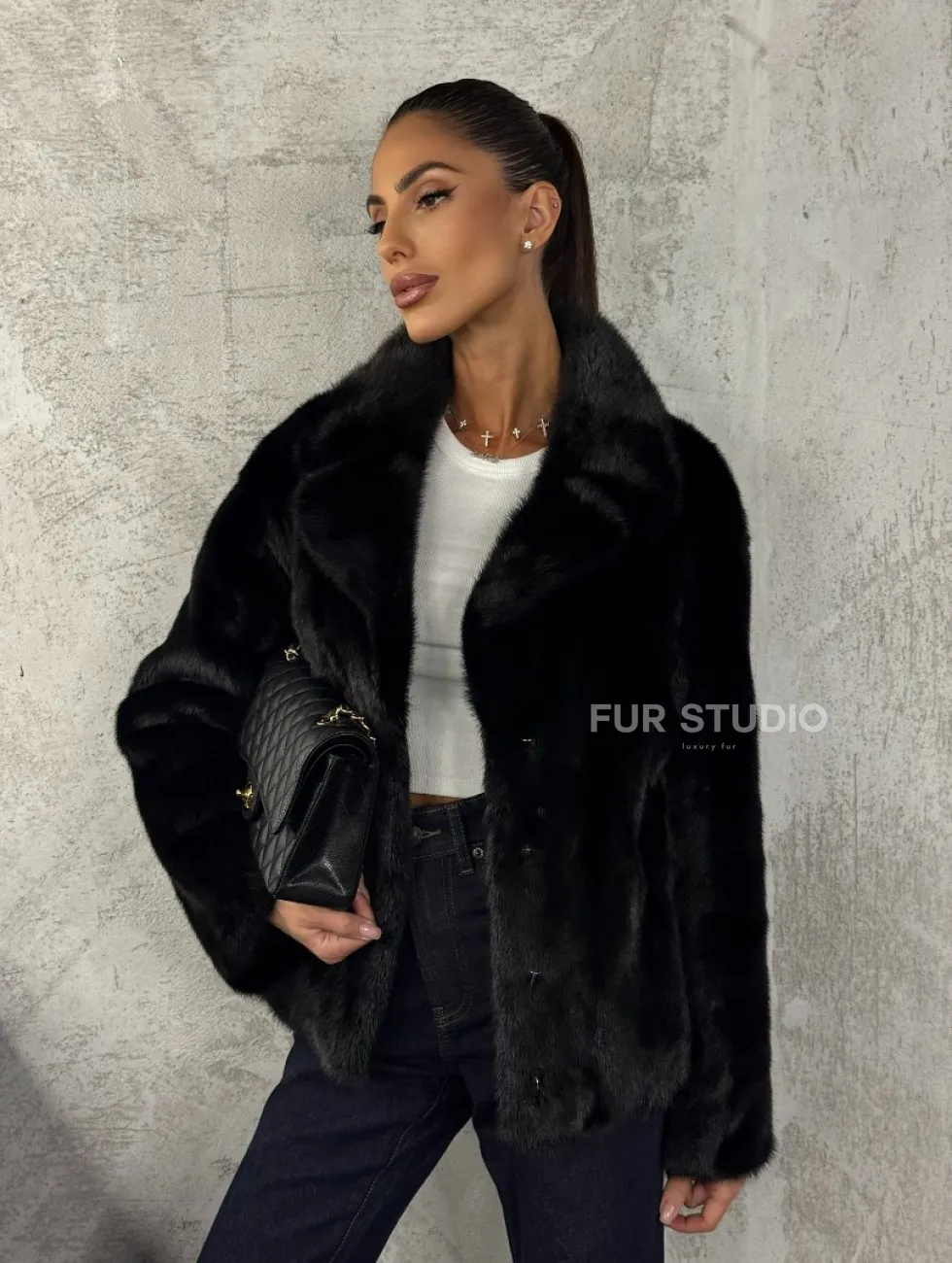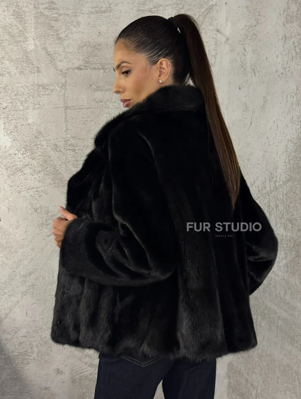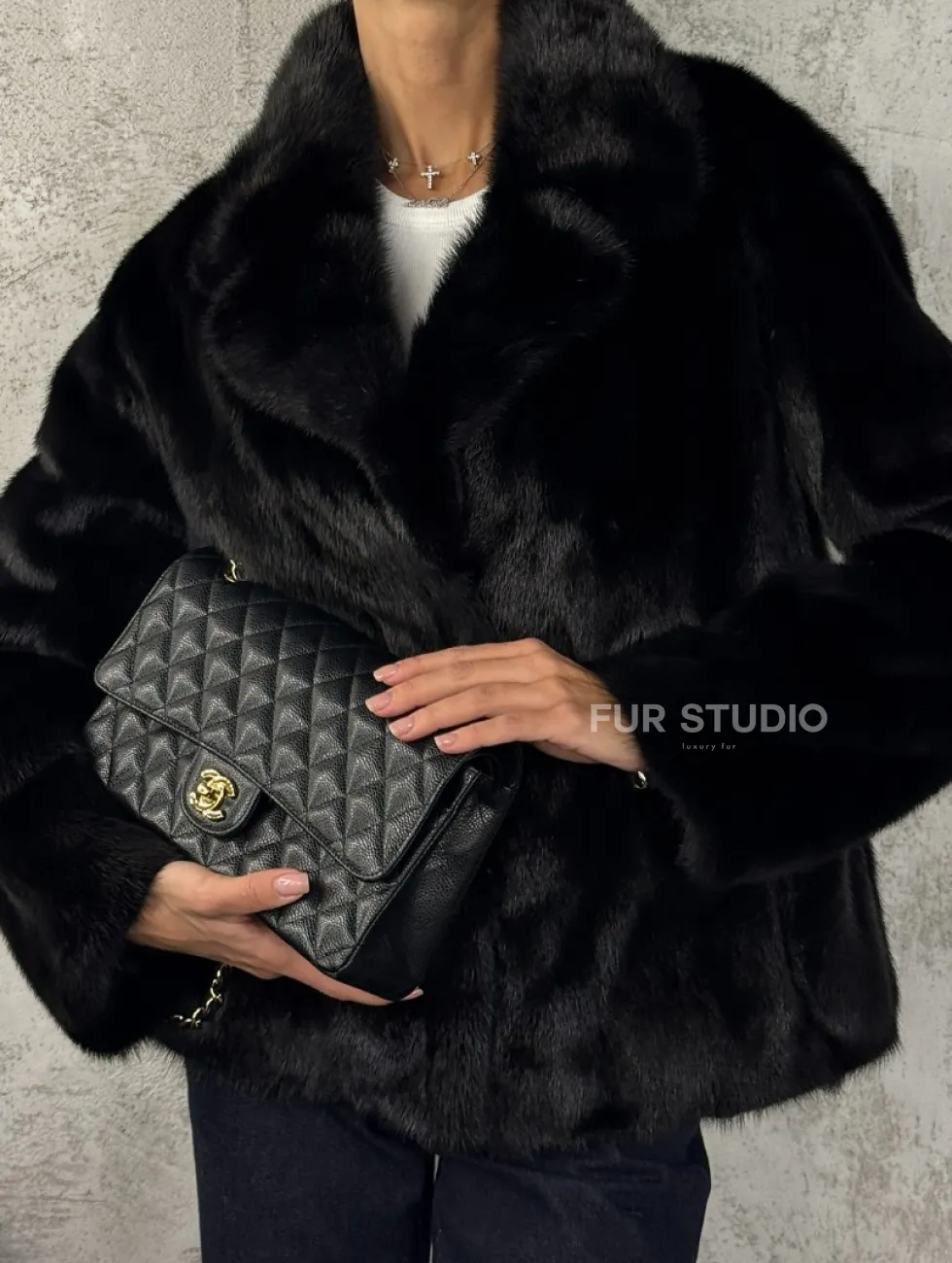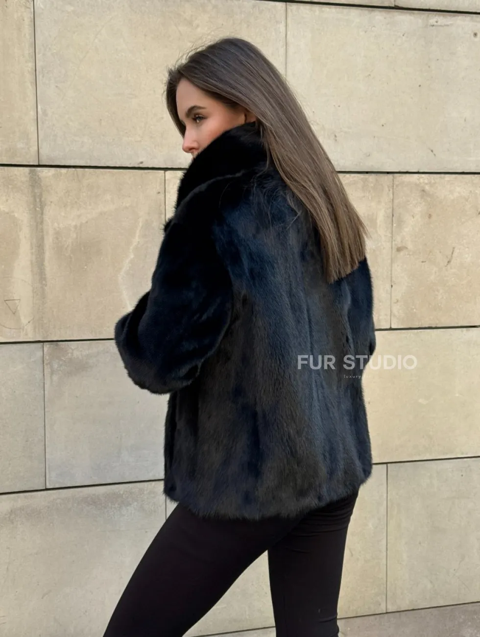 Черный норковый кроп - жакет с английским воротником доступна для покупки в нашем шоуруме Furs Studio в Чите. У нас так же есть доставка во все города России. Добавьте немного роскоши в свой гардероб с этой шубой, которая будет служить вам многие годы.