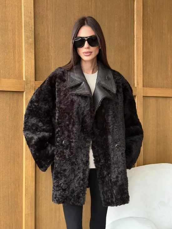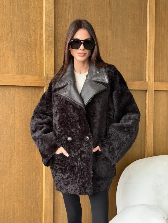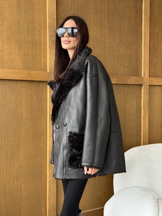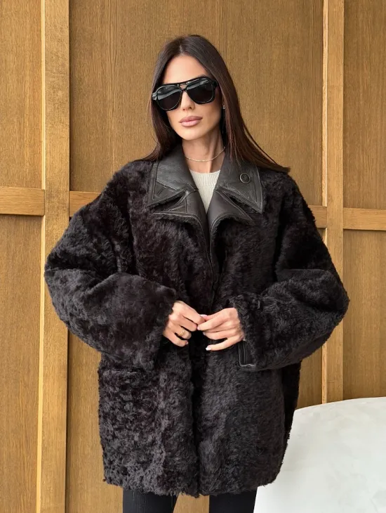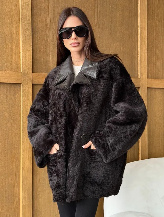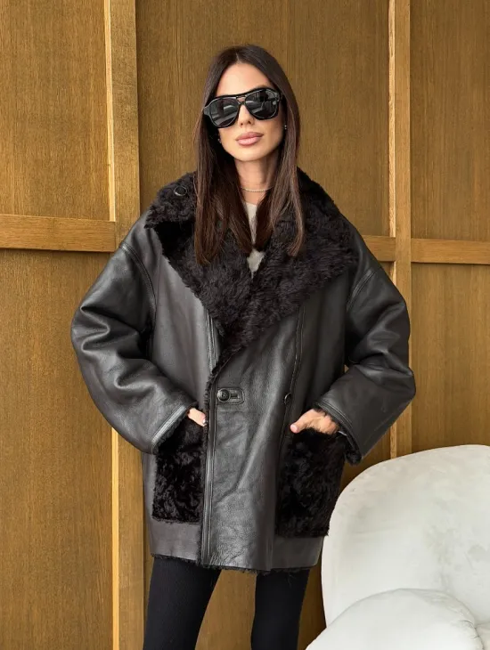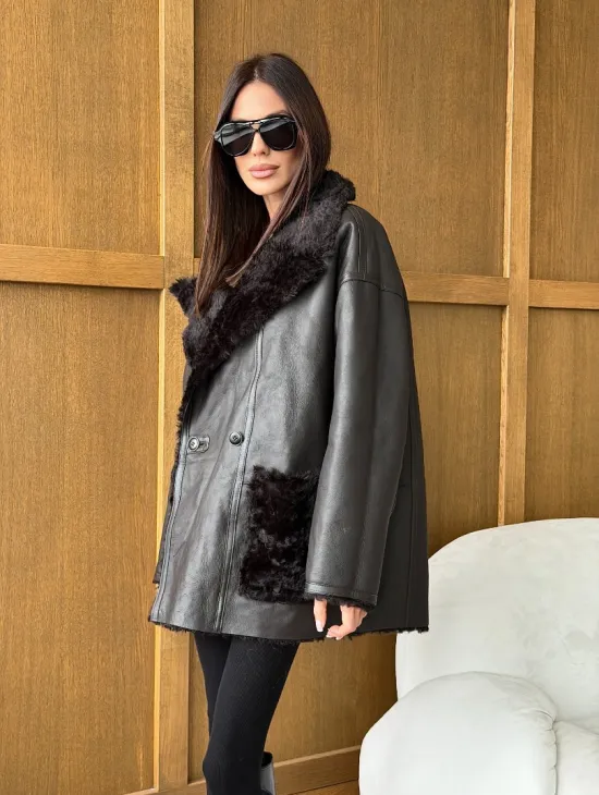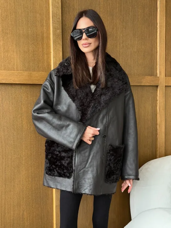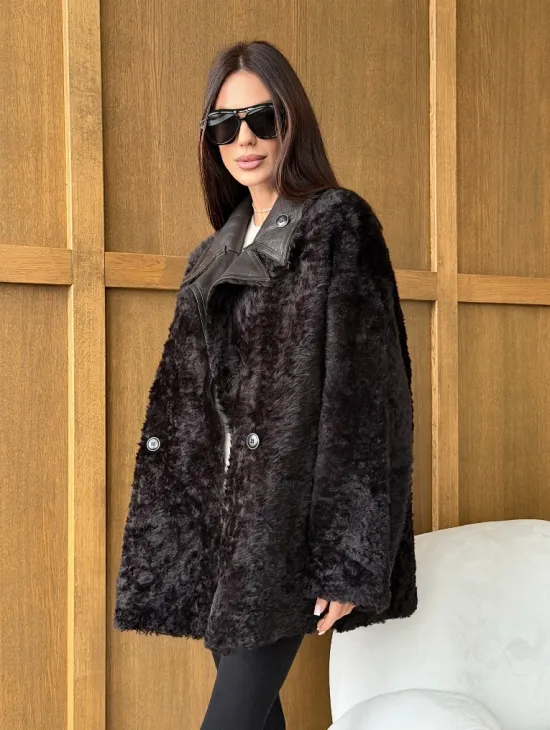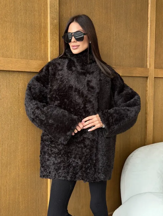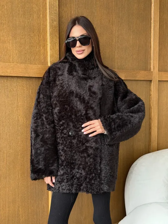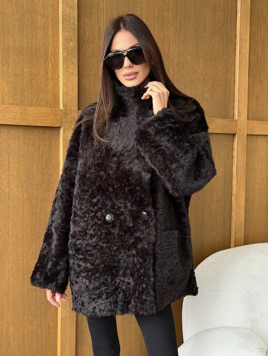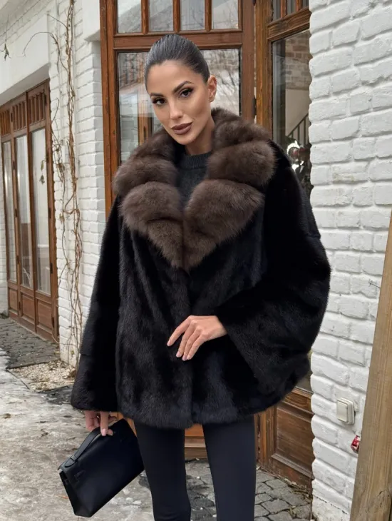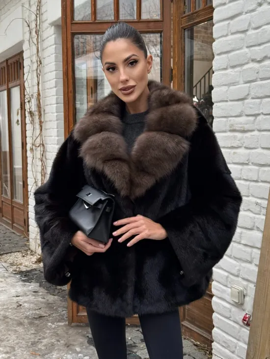 Чёрное пуховое пальто с меховым капюшоном из чернобурки 102744
