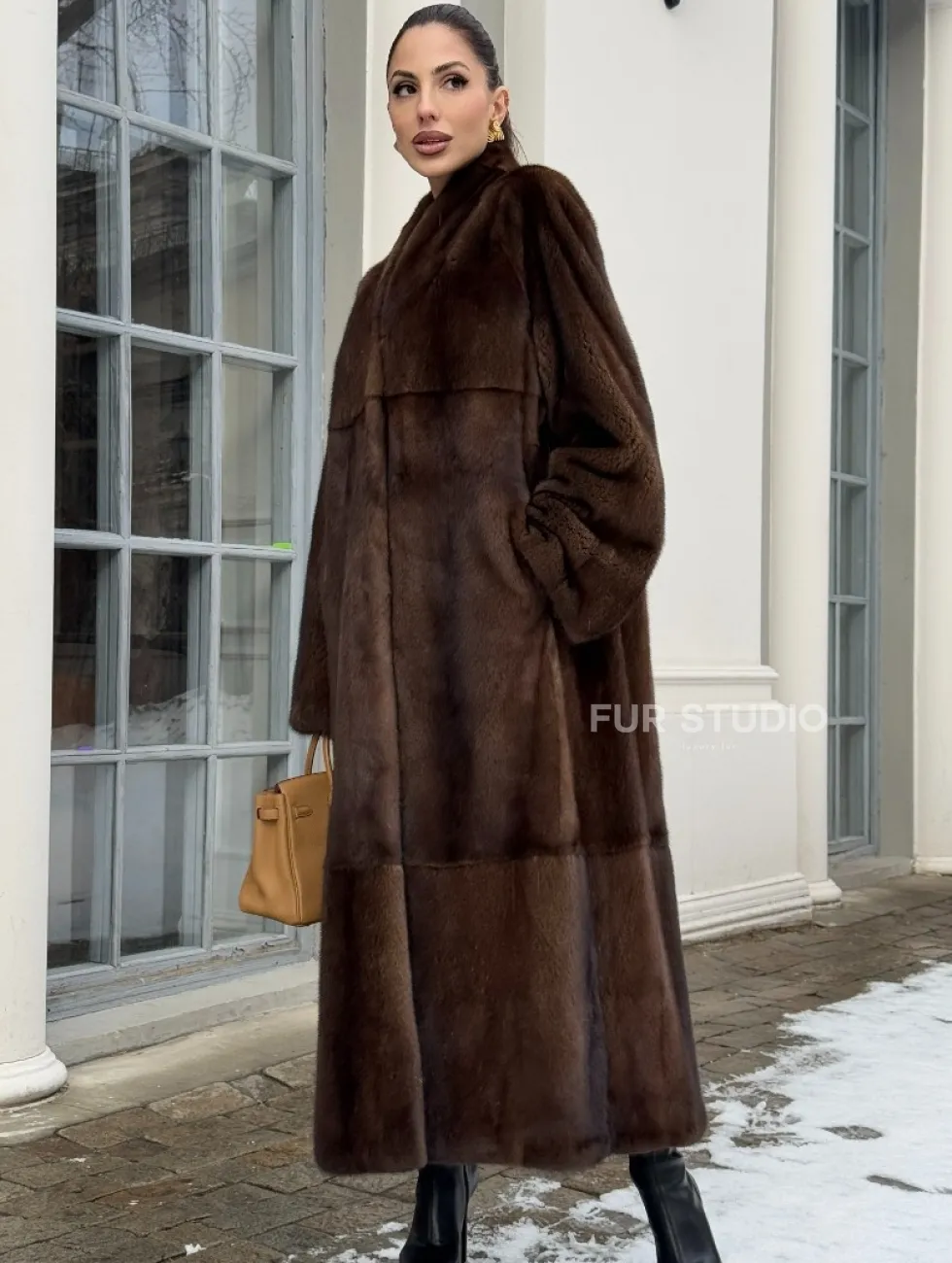 Цельнокроенная норковая шуба из североамериканской норки соболиного оттенка доступна для покупки в нашем шоуруме Furs Studio в Чите. У нас так же есть доставка во все города России. Добавьте немного роскоши в свой гардероб с этой шубой, которая будет служить вам многие годы.