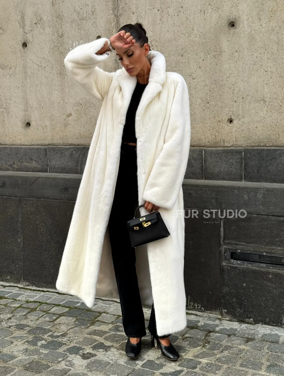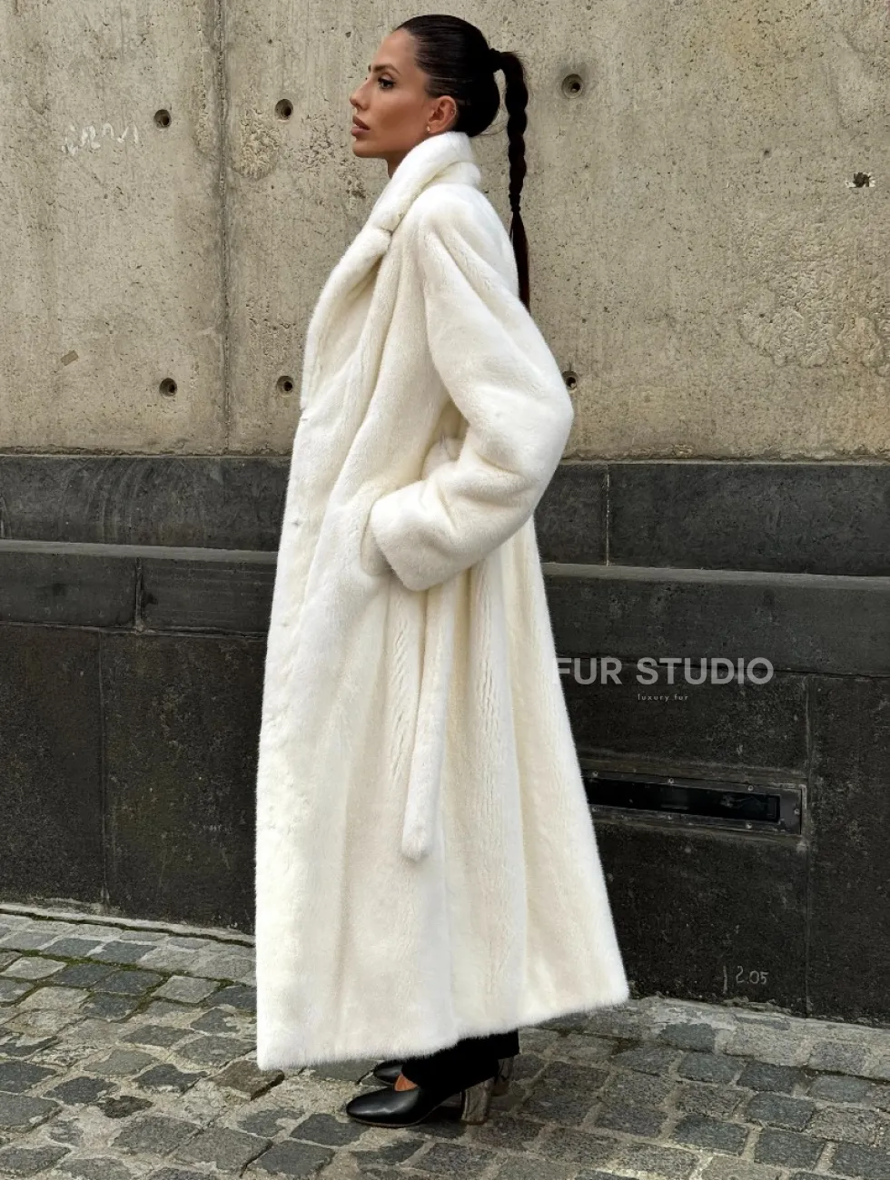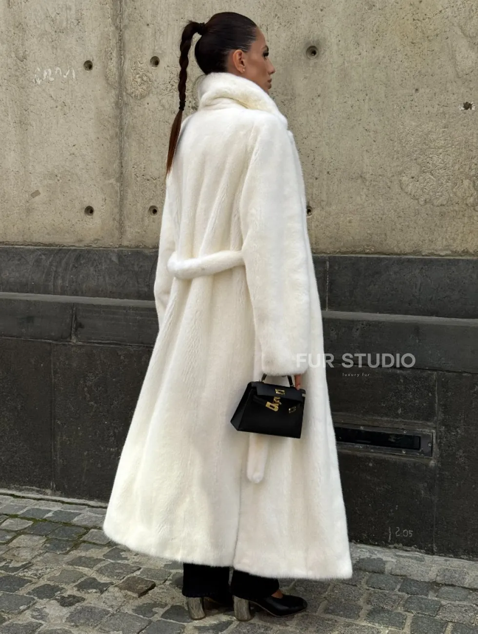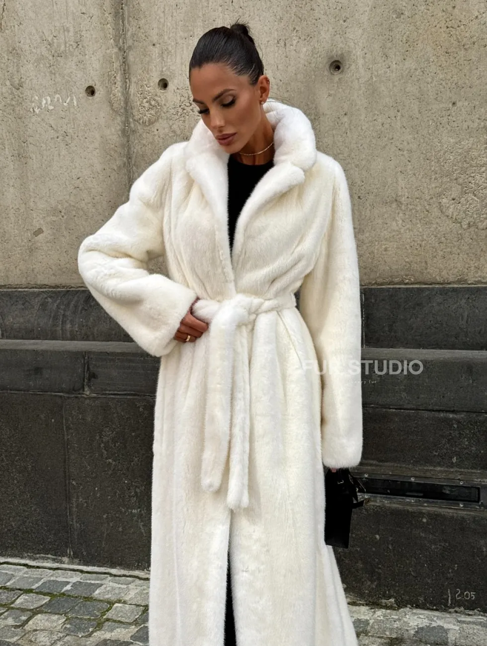 Роскошные рукава добавляют изысканности модели. Шикарные карманы позаботятся о комфорте ручек. Миниатюрная сумочка и грубая обувь сделают ваш образ гармоничным. Качество изделия будет радовать многие годы. Купить белую шубу из плюшевой норки с английским воротником могут дамы, которые обладают безукоризненным вкусом стиля.